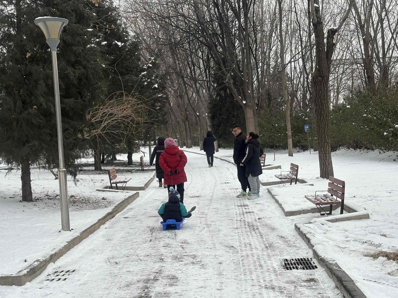 小玥儿小箖箖太开心了!第一次冬天回北京,跟着奶奶出来一起滑冰,虽然天气很冷,但