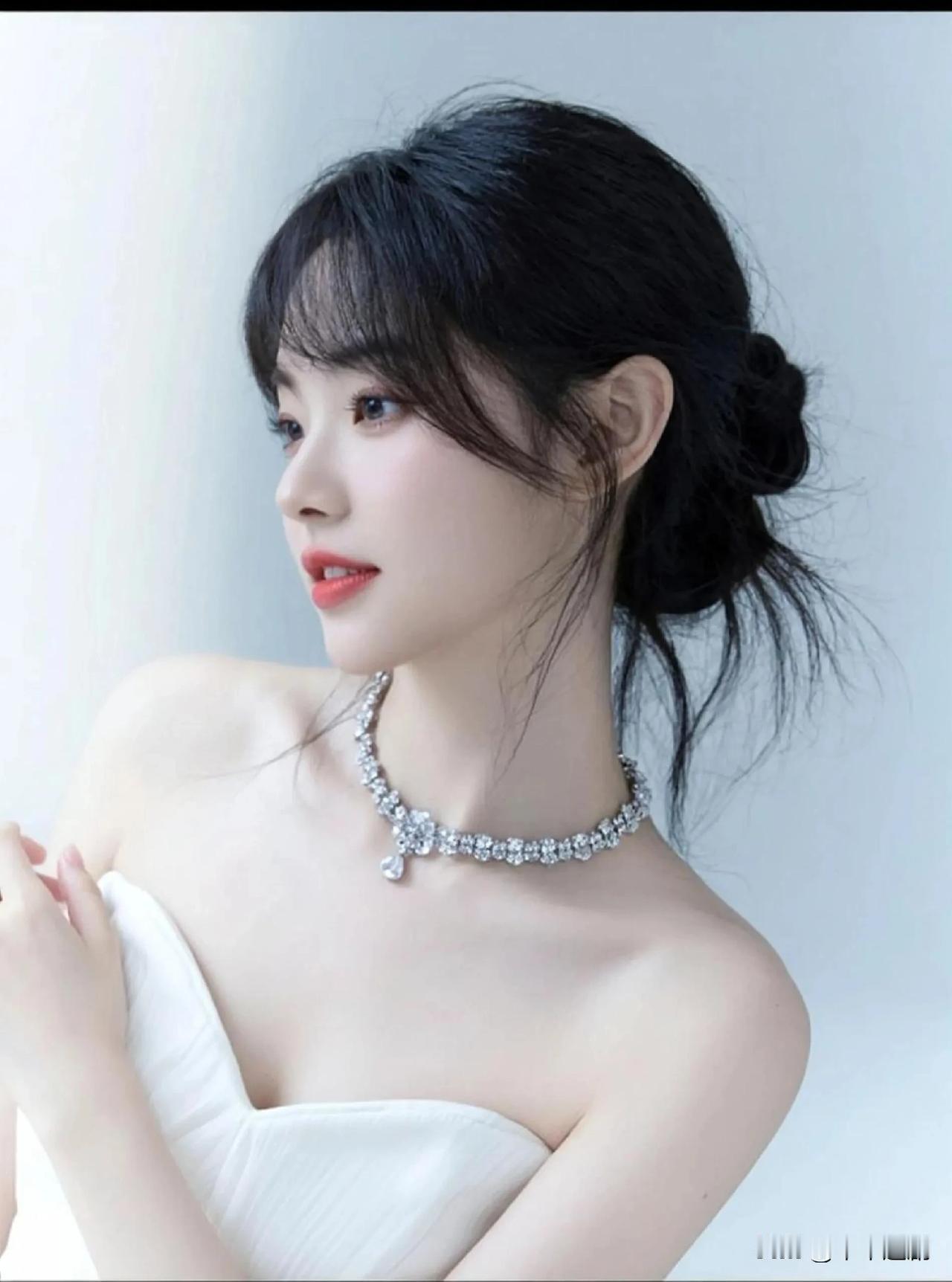 白纱抹胸衬着纤薄肩颈,钻饰颈链在柔光里轻闪。碎发盘成慵懒发髻,侧头时,把温柔与矜贵的氛围感都揉进了这帧画面里。 白色法式长裙 高级感露背长裙