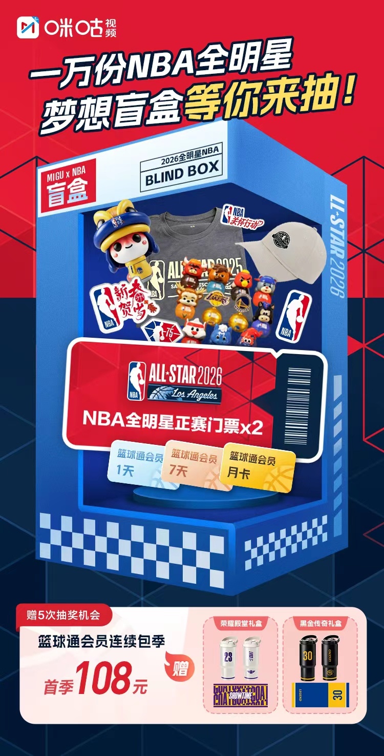 NBA全明星周末狂欢在即,超级福利已空降!🎁万份【梦想盲盒】限时开抽,全明星帽子、徽章、吉祥物…超多限量周边和会员卡等你抱走!但!真正的王炸是它⬇️✨ 隐藏款:全明星赛正赛现场门票! ✨ 直达赛场,亲历巅峰!如何参与?两步解锁:1️⃣ 进入活动页面将活动【分享】给好友,即可赠送1次抽奖机会2️⃣ 开通【篮球通会员】更划算!首季仅需108元赠送精品定制周边,立马再加赠5次机会!观赛+抽奖,双重狂欢!全明星的热度,大奖的运气,就差一个你!快来试试手气,说不定飞赴赛场的就是你!戳>>网页链接 #NBA##NBA全明星周末#
