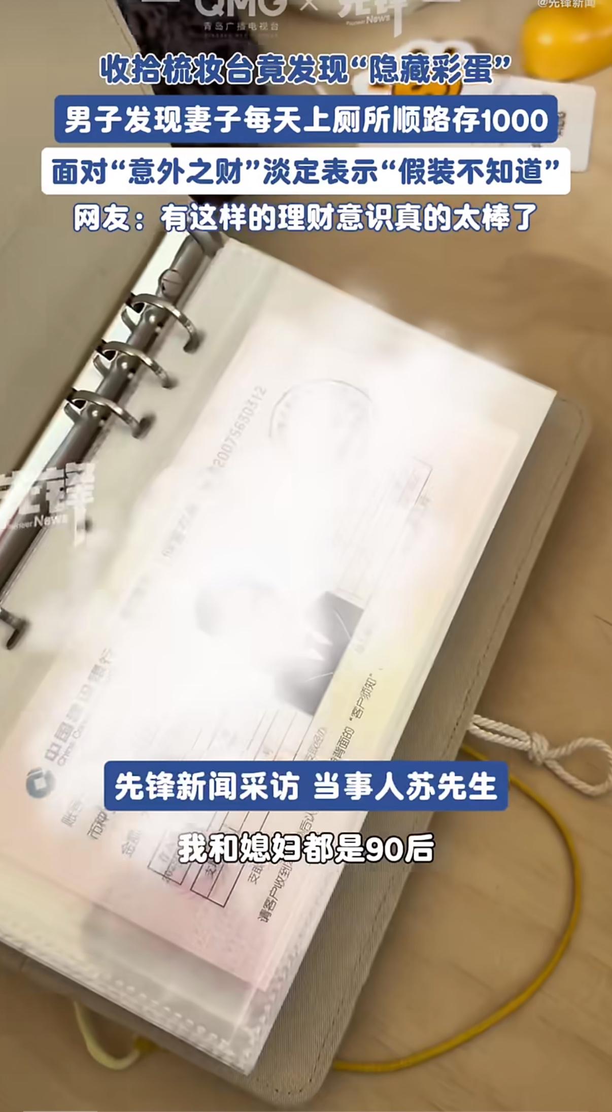 江苏宿迁一对90后夫妻,丈夫大扫除时在妻子的记事本里,翻出了近200张千元存单,加起来足足20万。后来才知道,妻子半年来每天都借着“上厕所”的由头,绕去隔壁银行存1000块,硬是靠这股子坚持攒下了这笔钱。 夫妻俩都是开小铺子的个体户,收入时好时坏,生意好的时候一天能赚几千,差的时候几百块都凑不齐,妻子怕手里的现金不知不觉花掉,就想出了这个“秘密存钱”的办法。更让人觉得暖心的是,丈夫发现后没生气也没追问,还笑着说“她不想让我知道,我就不问”,可转头又把这事儿分享给了媒体,一下子就引发了全网对夫妻间财务边界的热议。 妻子每天跑银行存1000块,不是不信任丈夫,而是知道挣钱不容易,想给家里留个“安全垫”。存单背面还记着车胎换新、给老人买药的开支,看得出来每一分钱都想着这个家。她不用手机银行,偏要跑柜台存纸质存单,图的就是那份仪式感带来的踏实,每存一次就觉得给家里多添了一分底气。而丈夫的反应更让人觉得难得,他没觉得妻子藏钱是对自己的防备,反而理解这是妻子守护家庭的方式,这种尊重比什么都重要。 有人觉得必须全盘透明,一分一毫都得说清楚,可这样有时候反而会让人觉得被束缚;也有人觉得该留些私人空间,可藏着掖着又容易生疑心。但宿迁这对夫妻的做法,其实给出了最好的答案:婚姻里的钱,关键不在于“全公开”还是“全保密”,而在于有没有共同的目标和足够的信任。妻子攒钱是为了家庭,丈夫尊重是因为信任,他们没签什么复杂的协议,却凭着默契把日子过明白了。 现在好多人总纠结于“私房钱该不该有”,其实换个角度想,只要钱是用在正地方,心里装着这个家,适当的“财务小自由”反而能让婚姻更顺畅。就像这对夫妻,妻子用自己的方式攒下应急钱,丈夫用包容的心态尊重妻子的选择,没有争吵没有猜忌,反而让这笔“意外之财”成了感情的粘合剂。 婚姻本来就是两个人互相搭伙过日子,不是谁管着谁,而是彼此体谅、互相支撑。钱是冰冷的,但藏在钱背后的心意是暖的,比起纠结每一笔钱的去向,不如多一份理解和信任,毕竟能一起为了好日子打拼,才是婚姻最该有的样子。 来源:先锋新闻