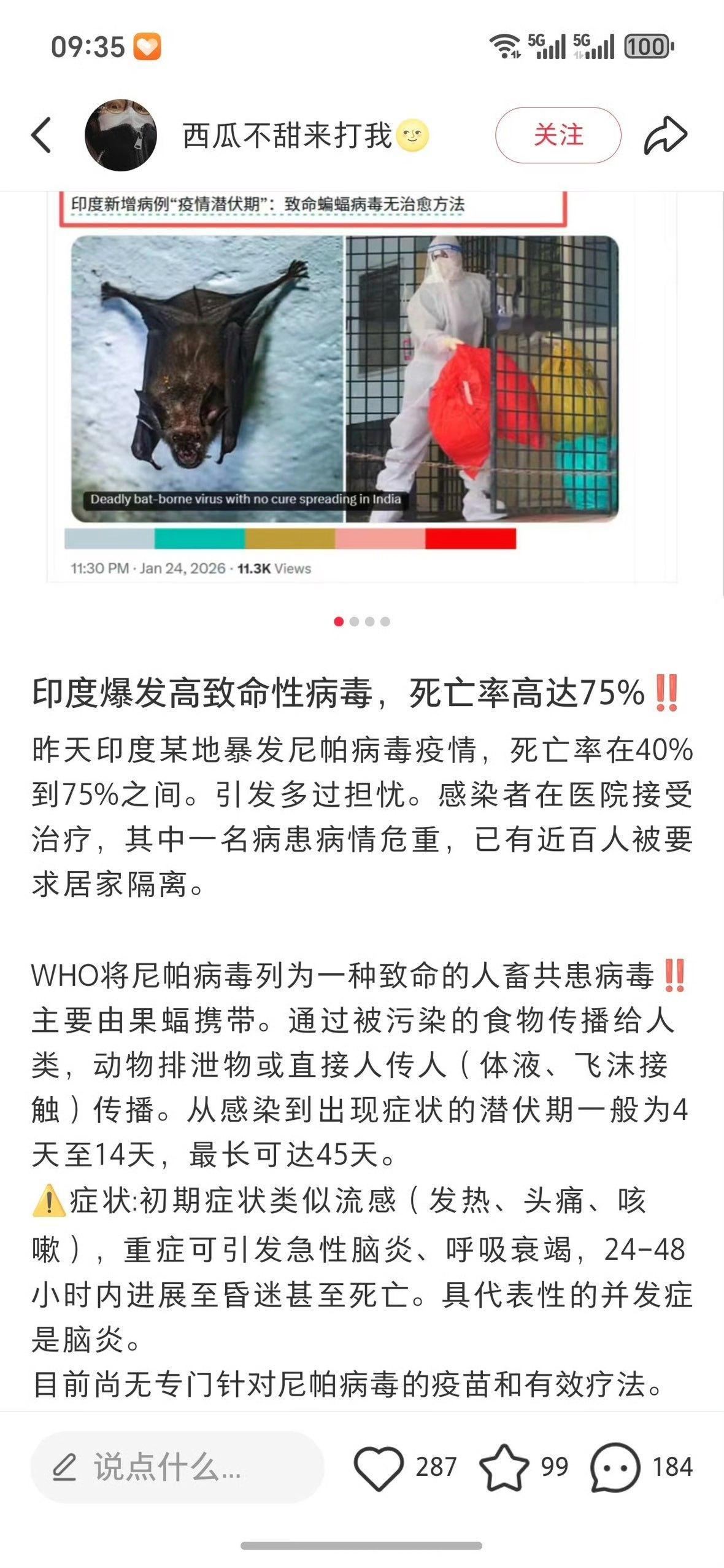 印度西孟加拉邦又爆尼帕疫情!这病毒死亡率40%-75%,太吓人了!大家戴好口罩勤