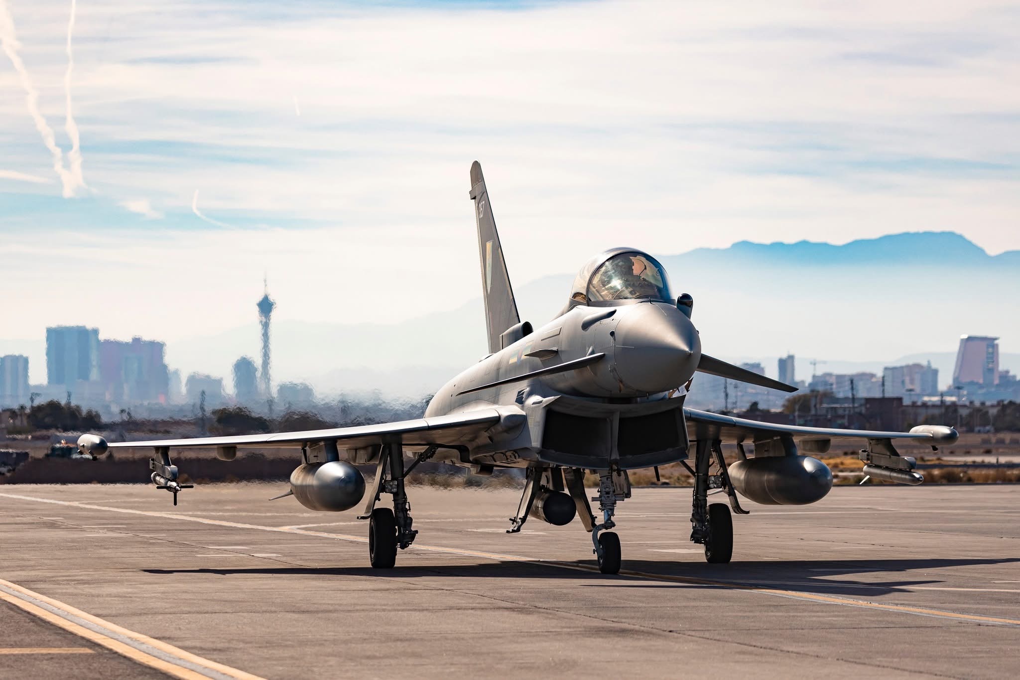今日台风 英国皇家空军(RAF)第3中队台风今日肥电 澳大利亚空军(RAAF)第75和第77中队F35A 军用飞机信息汇 摄于红旗联演2024期间的内利斯空军基地。Photo credit: RAF