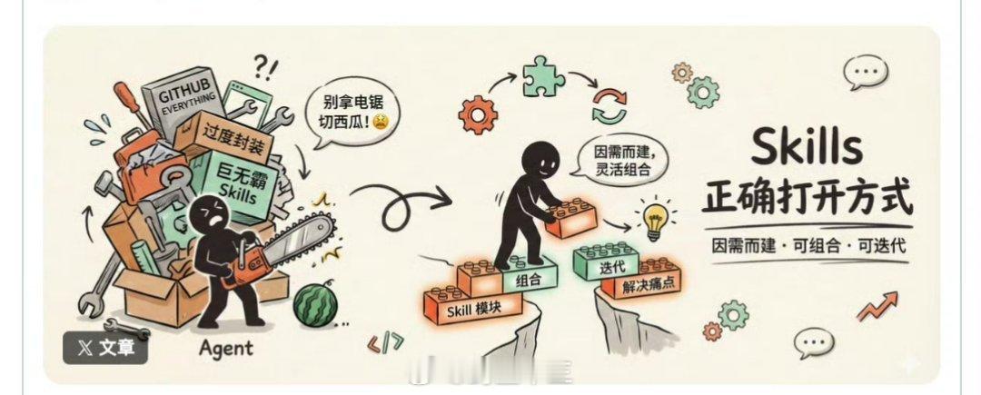 a股AI四大实用技能:Prompt、Workflow、Skill、Agent翻译+小白版解读(是什么+有啥用)这四个技能普及越多,AI的算力、存储需求就会越多。所以你想一想,现在99% 的人都没听过这些吧,一切才刚刚开始。我正在学使用Skill技能。1. Prompt翻译:提示词/指令语鳄鱼十三说,这是很多人第一步使用ai时候会学的技能叫提示词。小白解读-是什么:你跟AI说话、下指令的「话术」,不管是打字、语音,只要是让AI干活的话,都是Prompt;好的Prompt会把要求说清(比如“写一篇财经短文案,100字内,口语化”),差的就是一句模糊的“帮我写点东西”。小白解读-有啥用:AI的“导航指令”,指令越清晰,AI干活越贴合你的需求,不用反复改;练会写Prompt,能让ChatGPT、豆包、AI绘画这些工具都听你指挥,效率翻倍。2. Workflow翻译:工作流/流程化操作小白解读-是什么:把AI要做的一件复杂事,拆成一步一步的「固定步骤」,让AI按顺序完成,就像做奶茶的“煮茶→加冰→放糖→加奶”流程一样,AI也按这个套路来。小白解读-有啥用:避免AI做复杂事时混乱、漏步骤,比如用AI写财经推文,可设Workflow:Prompt写初稿→AI优化口语化→AI提炼重点标题→AI生成配图关键词,一键按流程出成品;适合批量干活,省时又统一质量。3. Skill翻译:技能/专属能力小白解读-是什么:给AI装上的「专属工具包」,原本AI只有基础能力,给它加Skill,就是让它学会某类专业事,比如“财经数据计算”“股票K线分析”“文案润色”都是AI的不同Skill。小白解读-有啥用:让AI从“通用打杂工”变成“你的专业助手”,比如普通AI不会算财报数据,给它加「财经数据计算」Skill,它就能直接帮你算市盈率、净利润增长率,不用你自己算完再喂给AI。4. Agent翻译:智能代理/自主AI助手小白解读-是什么:最“聪明”的AI形态,相当于给AI配了「自主思考+干活的能力」,它不用你一步一步下指令,只要告诉它最终目标,它会自己拆步骤、找工具、用Skill、走Workflow,甚至中途发现问题还会自己调整。小白解读-有啥用:彻底解放你的双手,比如你说“帮我做一份本周金属市场的财经分析报告”,AI Agent会自己:找最新金属价格数据→分析上涨/下跌原因→生成图文报告→提炼核心观点,全程不用你插手,适合做复杂、需要多步骤的专业事。Prompt、Workflow、Skill、Agent具体怎么用,自己再去AI一下。先做一个科普基础解释。牛市一定要抓住新主线新主线 (4班)我的投资新书《量价狙击》由顶尖学府清华大学出版上市了,购买地址:网页链接