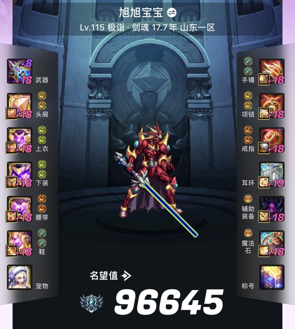 旭旭宝宝的名望再次刷新,来到了96645,重回国服第一宝座。在前天,有两位剑魂的名望超越了旭旭宝宝,因为周六打团的时候呢,这两个剑魂爆出了尤里斯的次元光剑,没想到昨天,也就是周天的时候,旭旭宝宝打狄瑞吉团本也翻出了狄瑞吉武器名望成功反超,重回国服第一。