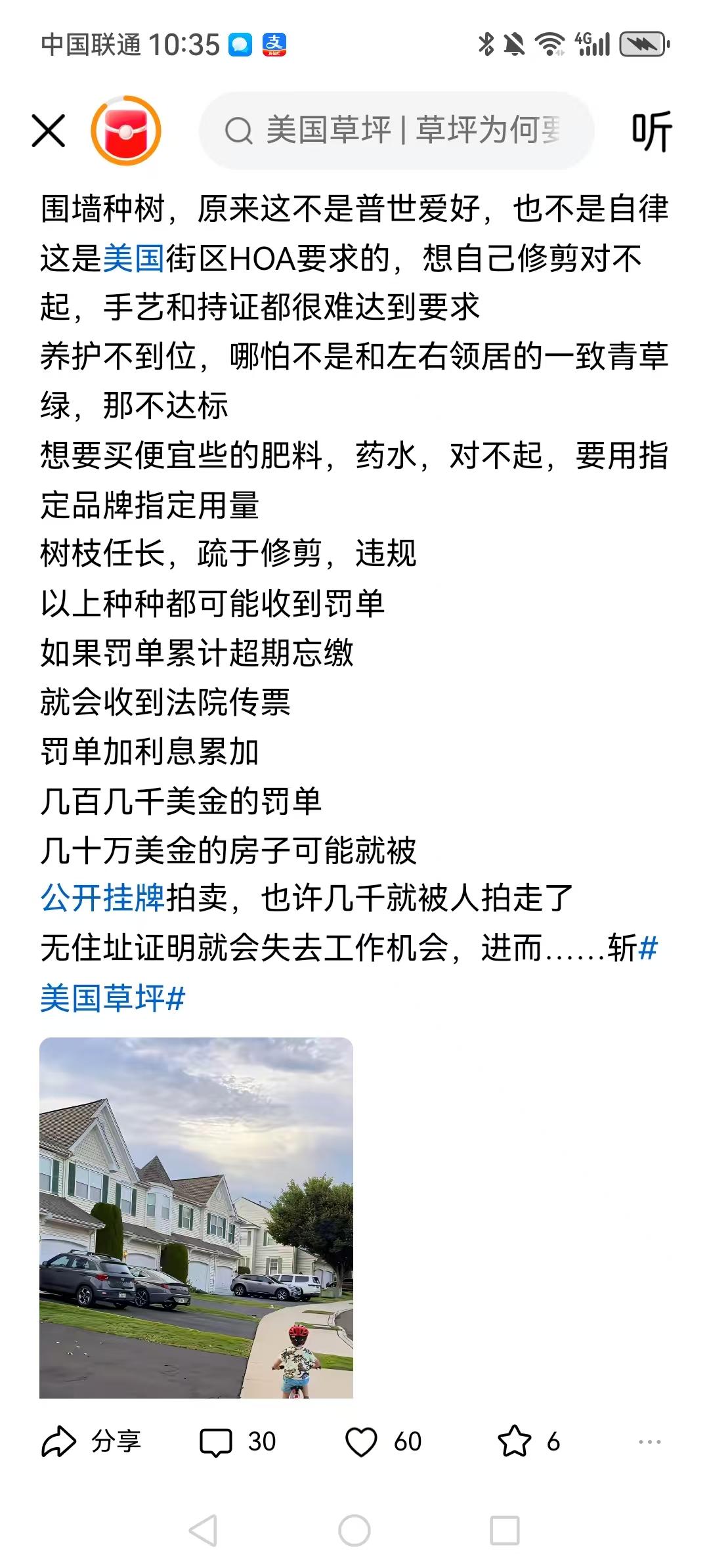 被骗了,以为的美国爱修剪草坪是情调。都是木头做的房子啊,树木要剪草坪要剪,不然的话容易引起大火。 易老中天说“风可进,雨可进,国外不能进”,公知们说“永久产权”,就是不敢说 ICE能进;税务局可以进,每月缴房产税,不缴拍卖你的房产。 美国电影很多这种桥段啊,只是大家都没有在意罢了。 美国不是自由国度吗?为啥草坪,树木不能自由的生长。