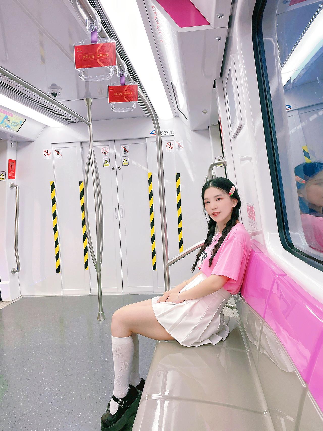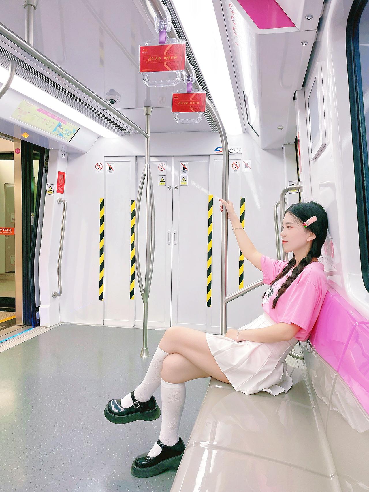 地铁美少女+白色小腿袜美女 小腿袜 袜子 黑丝