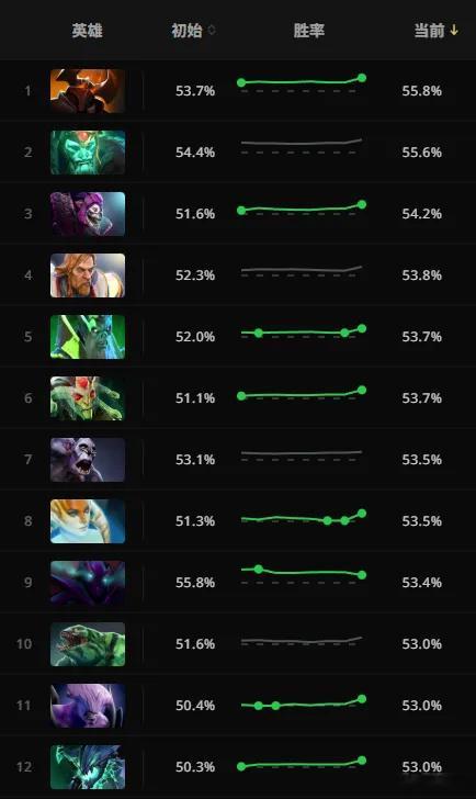 版本更新以后的胜率前12,混沌登顶了!虚空都53%胜率了,难以置信!dota2