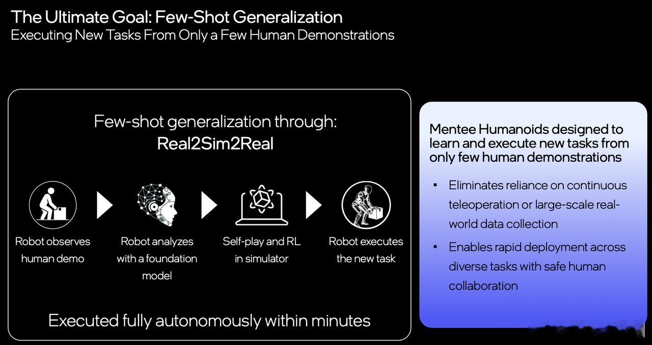 Mobileye 敲定收购以色列的 Mentee 机器人公司,这步棋核心是布局物理 AI,要把自动驾驶和人形机器人的技术打通做协同。两者虽应对的场景不同,一个偏结构化高速环境,一个面对非结构化的通用任务,但核心的环境理解、安全决策能力是相通的。Mentee 的人形机器人软硬件高度整合,是按真实场景长期运行设计的,AI 端主打仿真优先的学习模式,还能快速掌握新任务,适配非结构化环境。双方也规划了落地节奏,先做工业场景再逐步推向家庭,这次收购也是把 Mobileye 的智驾技术和 Mentee 的机器人能力结合,打造统一的物理智能体系,这个布局还挺有代表性的。