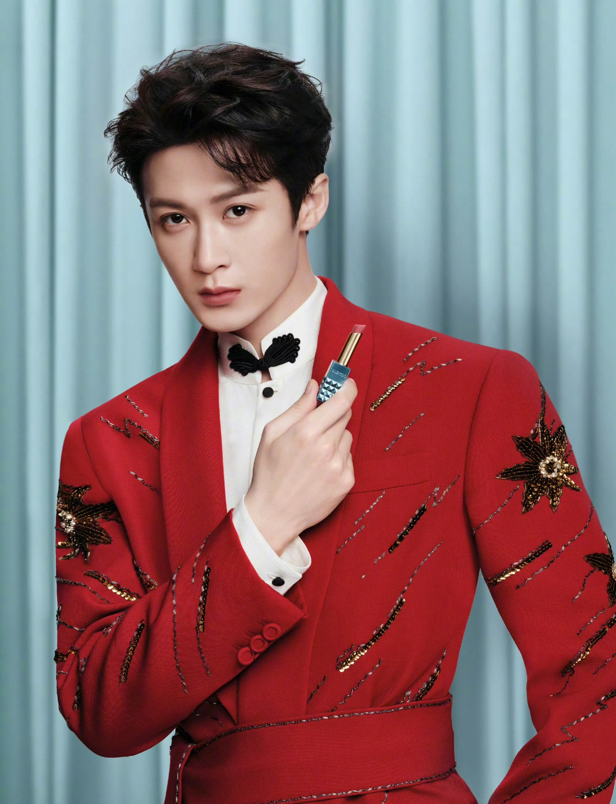 新年开门红,Valentino美妆全球代言人檀健次全新新年大片,一袭红装高级亮眼