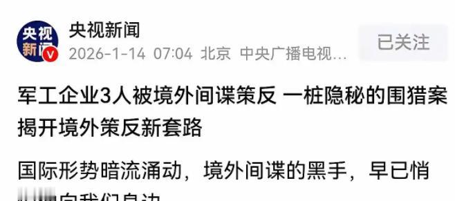 央视曝光军工重大泄密:间谍使用了美人计1月14号央视新闻对外曝光了一则军工企业的泄密事件。一个姓郭的军工企业的经理在前往某国验收某项项目的时候,被安排与一个所谓的女性商务代表见了面。随后,郭某没有能够顶住美色的诱惑犯了错误。错误发生之后,对方马上表明身份,并且已曝光隐私来威胁郭某,要求对方为国外谍报组织服务。 郭某是军工企业的项目负责人,手里攥着海外项目验收的关键权限,国防的核心机密他都能接触到,按理说这样的人本该把保密弦绷得比谁都紧,可他偏就栽在了最不该栽的地方。   郭某2025年11月随团去某国验收项目,这趟看似常规的公务,从他踏出国门那天起,就被境外谍报组织给盯上了。这些人早就摸透了郭某的底细:常年出差不着家,家里关系紧张,平时性格内向没什么朋友,正是最容易被突破的软肋。没过多久,一个自称“商务代表”的女人就在社交场合“偶遇”了他,接下来几天,这女人总能“恰巧”出现在郭某身边,不越界还特懂他,聊工作时表现出对中方技术的尊重,那种被理解的感觉,让郭某彻底放松了警惕。   直到一次晚宴后,郭某酒后失态犯了错,第二天一早就收到了自己的私密照片和视频,发件人直接亮明身份——境外间谍。到这时候郭某才明白,哪是什么艳遇,根本就是精心布下的陷阱。对方拿着隐私要挟,说要是不配合就把东西公之于众,让他身败名裂。 郭某怕了,他舍不得自己的职位和名声,就这么稀里糊涂答应了为间谍组织服务,从一个军工负责人变成了卖国贼的帮凶。   一开始郭某还自我安慰,只给些网上能查到的公开资料,可间谍哪会满足?一步步逼着他拿核心机密,要内部评估报告、研发进度数据,还有材料配比公式这些真正关乎国防安全的东西。 这时候的郭某已经骑虎难下,不光自己泄密,还被对方逼着把同行的高级工程师陈某和工作人员黎某也拉下了水。陈某懂核心工艺,黎某管文档能接触项目记录,三个人组成了泄密团伙,郭某还在情报交接时当起了翻译,把国家的家底往外送。   后来经鉴定,他们泄露的资料里有12份是秘密级国家秘密,6份是情报,陈某和黎某额外还泄露了2份秘密级国家秘密和3份情报。 这些东西要是被境外势力用上,咱们的国防防线可能就出现大漏洞,后果想都不敢想。好在天网恢恢,郭某回国过海关时,因为携带的数据异常被拦下,国家安全机关一查,不到两周就把这个团伙端了。 最终郭某因间谍罪被判了十年,剥夺政治权利三年,陈某和黎某也没跑掉,都被依法追究了刑事责任。   说真的,郭某这事太让人痛心了。他不是不懂保密规矩,单位肯定没少搞培训,可这些培训在他这儿估计就是走过场,没真正往心里去。境外间谍现在的手段太狡猾了,不再是硬邦邦的胁迫,而是先摸透你的心理软肋,用情感、美色这些软刀子进攻,等抓住把柄再狠狠拿捏。他们专挑军工、国防科研这些关键领域的人下手,打着商务、社交的幌子建信任,再用隐私威胁、利益诱惑一套组合拳,让人防不胜防。   更该反思的是,有些单位的保密管理真是漏洞百出。郭某出国前的审查、在境外的监督全是空白,要是早发现他和陌生境外人员频繁接触,及时提醒制止,哪会走到这一步?保密教育不能只念文件,得让大家真真切切看到泄密的后果,知道间谍的套路有多阴险,不然到了国外没人管,孤独感一上来,很容易就放松警惕。   郭某这样的人,拿着国家给的信任和待遇,扛着国防安全的重担,却因为一时糊涂毁了自己,还差点害了国家。 这哪是个人的小事,是关乎千家万户安全的大事啊!军工机密哪怕漏出去一点,都可能让咱们的国防建设白费功夫,那些间谍就是盯着这些缝隙钻空子。 所以说,涉密岗位的人不光要自己硬气,顶得住诱惑,单位的管理更得跟上,从出国前到回国后全流程盯着,责任落实到位,谁要是敢马虎,就得狠狠追责。   现在境外间谍的套路越来越隐蔽,可再隐蔽也躲不过严密的防范和坚定的意志。郭某的十年牢狱就是教训,不管职位高低,只要碰了国家秘密的红线,就没有好下场。 咱们每个人都得绷紧安全这根弦,尤其是那些握有涉密权限的人,千万别以为诱惑离自己远,那些看似无害的“偶遇”和“关心”,可能藏着毁一生的陷阱。