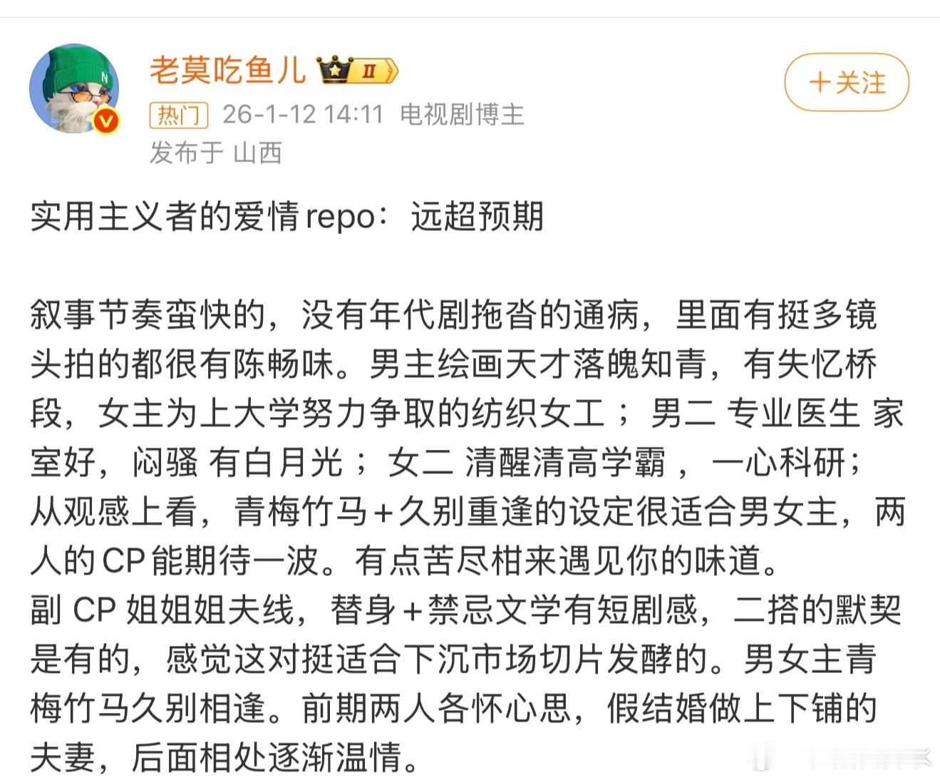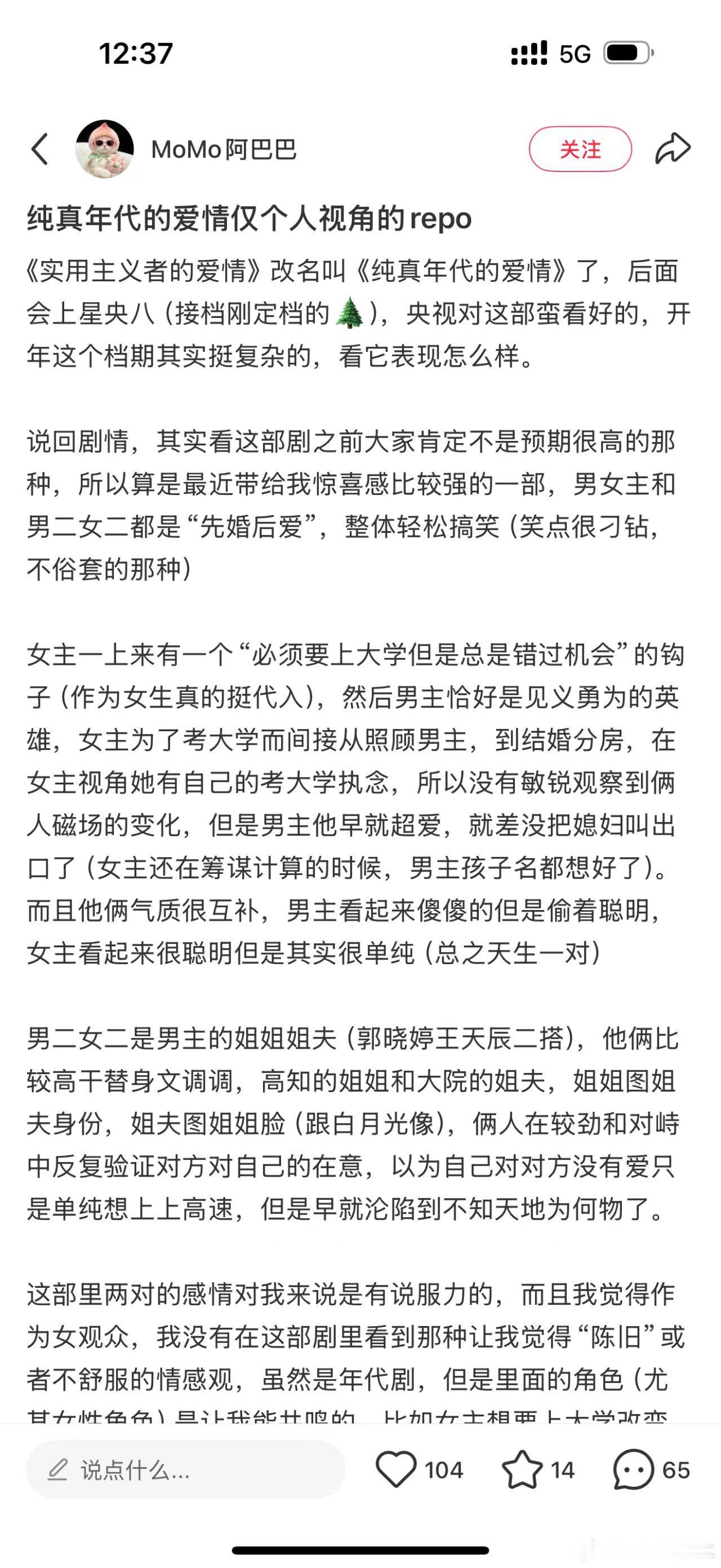 纯真年代的爱情口碑 纯真年代的爱情看《纯真年代的爱情》repo超稳,陈飞宇孙千先婚后爱CP感拉满,副线也有张力,坐等定档啦~