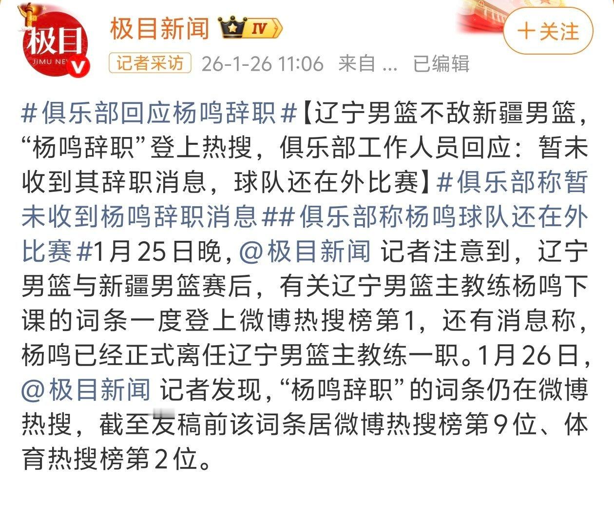 杨鸣 辞职有些媒体还真是看热搜做新闻有采访资质就是可以水稿子啊辽宁男篮