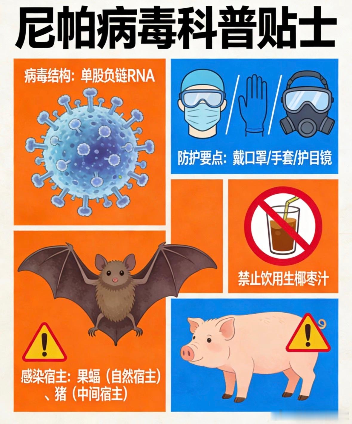 没记错的话这个病毒有了好多年了吧,但是这次不一样的点就在于,之前是猪传播,这次是蝙蝠,一下子范围就广了,但是也不要恐慌,目前只有几个国家小范围有感染尼帕病毒感染死亡率可达40%以上
