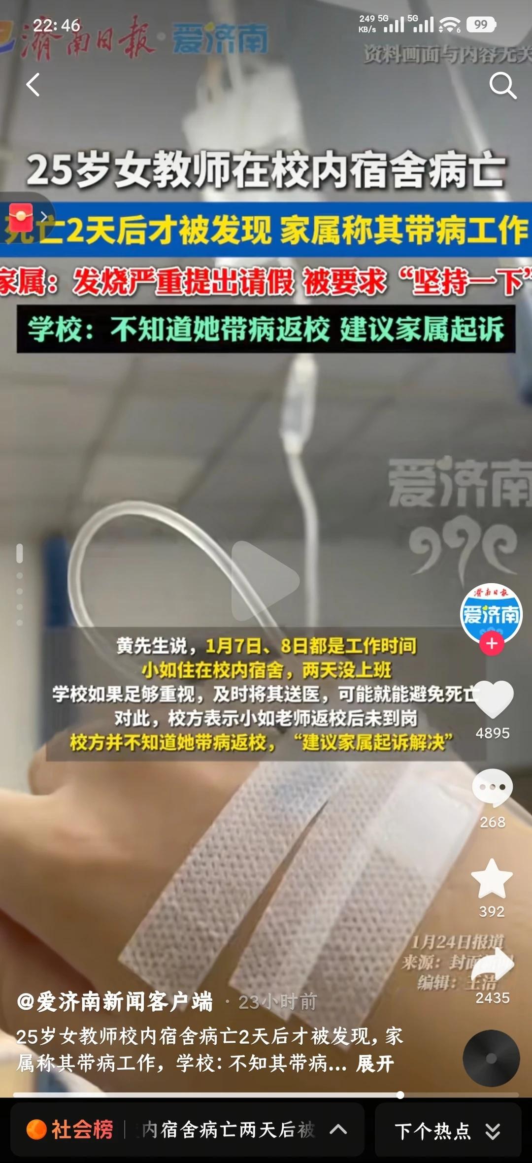 一线教师谈25岁合肥女教师宿舍病逝 睡醒看到老师群里面在发这个新闻 我点开抖音热点搜索🔍 前因后果看完以后真的很伤心很伤心💔 25岁 花一样的年纪 无意评判任何责任 只想和所有在一线的老师们说 请好好照顾自己的身体 没人比你自己更重要 —— 今年是我工作的第六年 27岁的我已经做了两届高三班主任 个中艰辛不足为外人道 这是我的选择和职业要求 但 每天睡眠不足 心里永远记挂着什么 担心焦虑 害怕学生出事 违纪 各种处分材料 家校沟通 教学压力 做不完的题 查不完的寝 学生生病请假 心理问题开导…… 无数个加班到凌晨一点备课的深夜 泪湿的试卷和枕巾 —— 后来 高考结束 在那个六月 我用了整整两个月 调理身体 照顾自己 每天晒太阳 坚持泡脚 饭后散步 三餐准时 困了就睡💤 无所谓时间 大概20天这样我恢复了正常作息 —— 不单方面说工作的辛苦 只想告诉大家 一定一定要把身体放在第一位 一线教师请假不容易 会面临问题 超过天数扣钱也好 调课也好 不管怎么样 当身体发出警报⚠️ 一定要马上立刻去🏥 —— 对自己的家人来说 你真的是独一无二的 不会有比失去你更痛苦的事情 我们在学校是工作人员 教师 班主任 在家里却是顶梁柱 支撑点 你在别人眼里的微不足道 却是在另一群人心里的不可替代[飞吻] 社会新闻 教书育人为人师表 教师 合肥 照顾好自己 保重身体 老师的命也是命 当代人民教师生存现状 社会热点