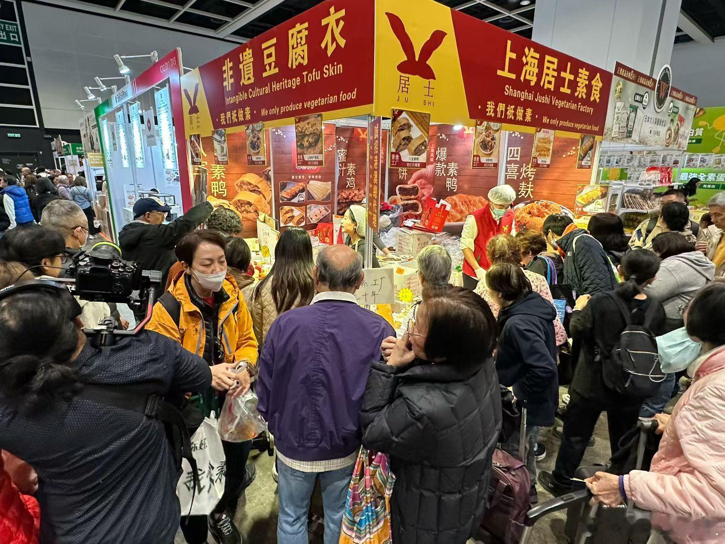 今年香港亚洲素食展人气最火爆的摊位,竟是这家来自内地的“居士”,他们家的素鸭被疯