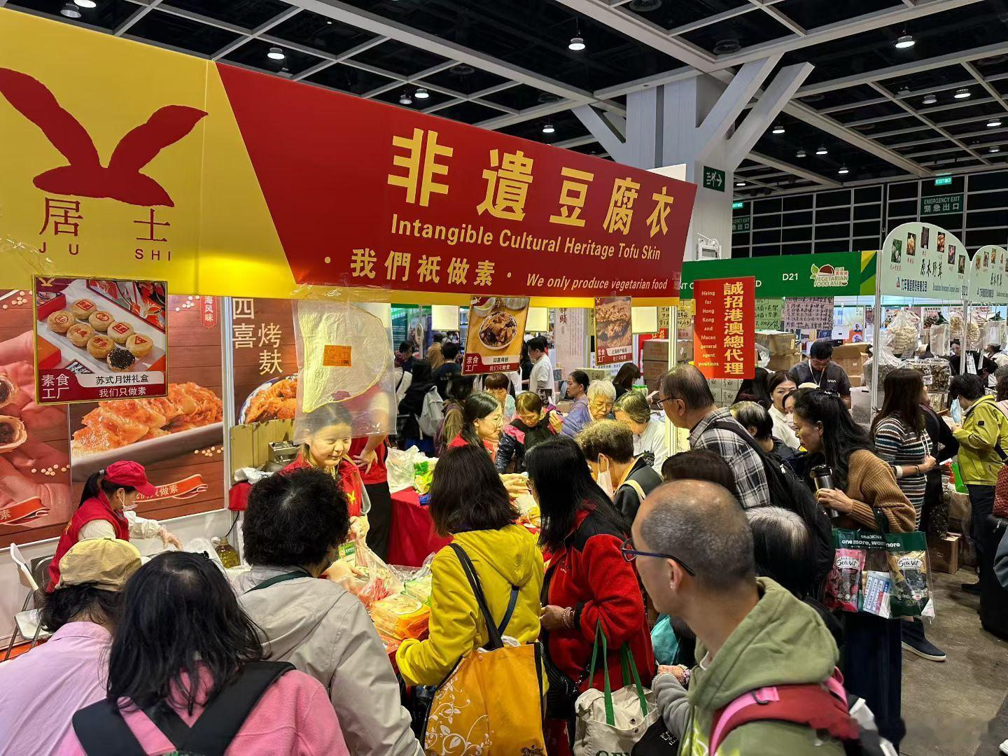 今年香港亚洲素食展人气最火爆的摊位,竟是这家来自内地的“居士”,他们家的素鸭被疯狂推荐。