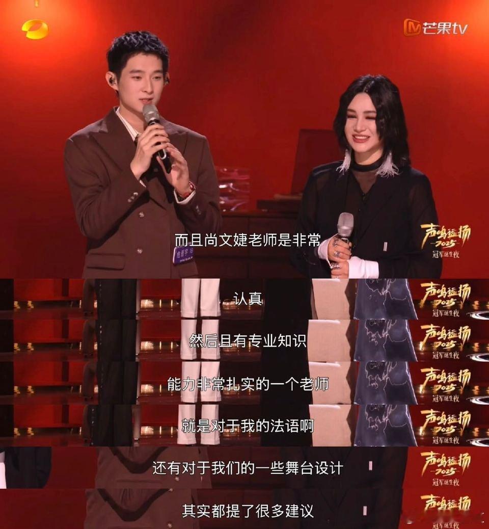 尚雯婕又帮出一个冠军 尚雯婕慧眼识珠,总决赛帮唱危晋宇,助力他拿下《声鸣远扬》冠军!实力导师+潜力新人,强强联手,实至名归!