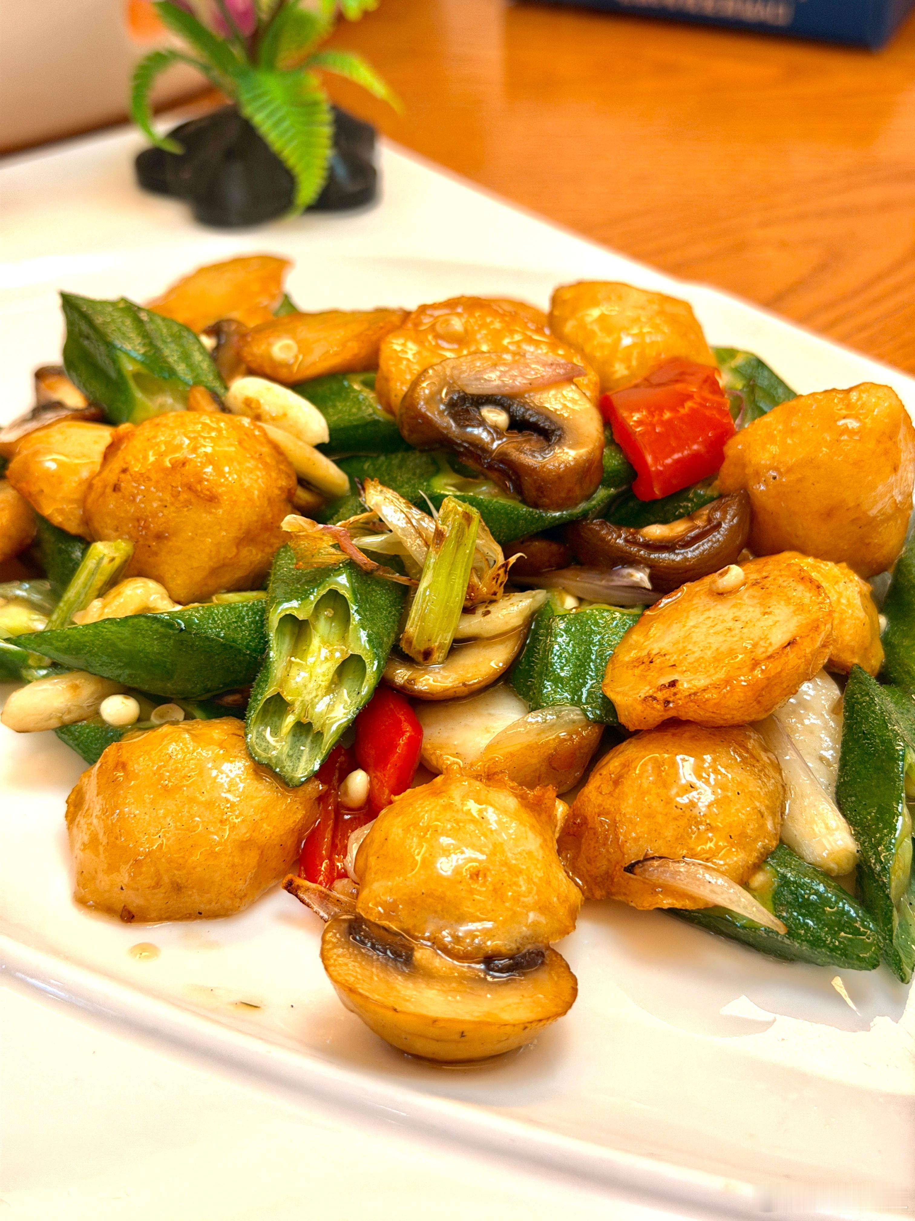 今日午餐。广州菜!第一次吃清炒鱼丸~好吃😋!!!广州