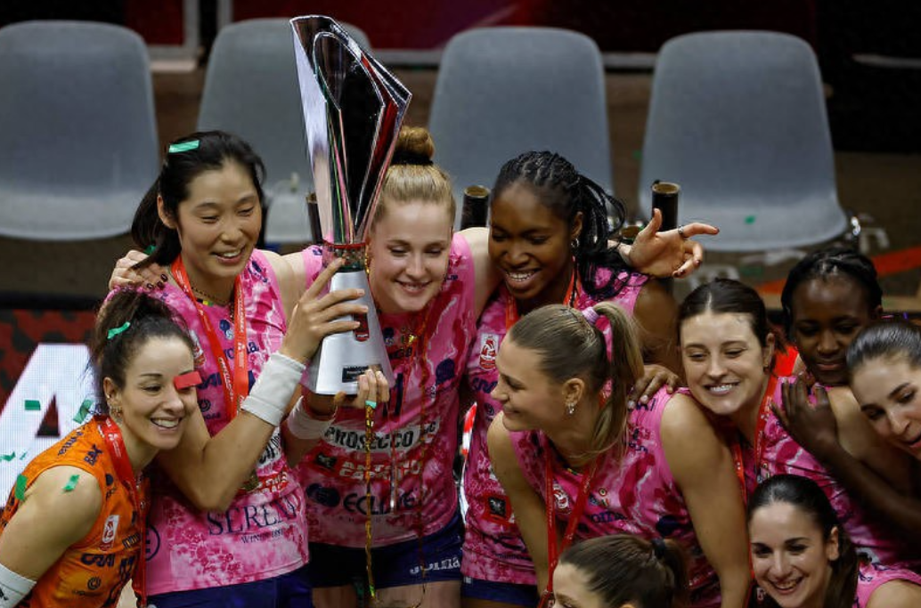 1月25日,2025-2026赛季女排意大利杯决赛在都灵展开巅峰对决。朱婷效力的科内利亚诺女排以3比0力克斯坎迪奇队成功卫冕。这支豪门球队就此实现意大利杯七连冠的壮举,同时将队史该项赛事的冠军总数增至8个,书写全新纪录。 这个赛季,科内利亚诺女排已经错失了超级杯、世俱杯等冠军荣誉。本场比赛她们在攻防端展现出整体优势,进攻得分59比49领先对手。作为球队的核心球员,朱婷首发出战打满全场。 比赛中朱婷的表现多次点燃赛场气氛,尤其是第三局的“神仙球”更是引爆全场。当科内利亚诺女排24比25被对手拿到局点,朱婷在调整攻中完成高难度后仰扣球将比分追平。随后朱婷原地起跳完成致命一击,为球队拿到赛点。连续精彩得分不仅让现场观众沸腾,更引得解说员惊叹“Unbelievable from Zhu Ting”(不可思议的朱婷)。 事实上,朱婷的价值远不止这几次得分。首局球队落后时,她的强攻帮助队伍扳平比分,第二局局末的关键防守更是为球队逆转奠定基础。全场朱婷贡献13分,其中29扣12中进攻成功率达到41%,还收获1次拦网得分。她在保障环节的表现更为亮眼,承担了全队最多的28个一传任务且实现0失误。一传到位率60%、完美到位率42%,攻防两端的全面发挥成为球队取胜的重要支撑。媒体和球迷纷纷将“关键分女王”“隐形支柱”的称号赋予朱婷。 赛场之外,队友们也将胜利喜悦分享给朱婷。颁奖仪式上,自由人德吉纳罗为朱婷抛洒金色彩带,其他队友也纷纷集体呼应。现场球迷的欢呼以及朱婷与队友的庆祝合影,是朱婷留洋海外联赛的又一次美好回忆。这座意大利杯冠军,对朱婷而言有着特殊的意义,这是她职业生涯收获的第23座冠军奖杯,继2025年2月首夺意大利杯、同年4月拿下意甲冠军后,朱婷再次捧杯,进一步巩固了自己在球队的地位。