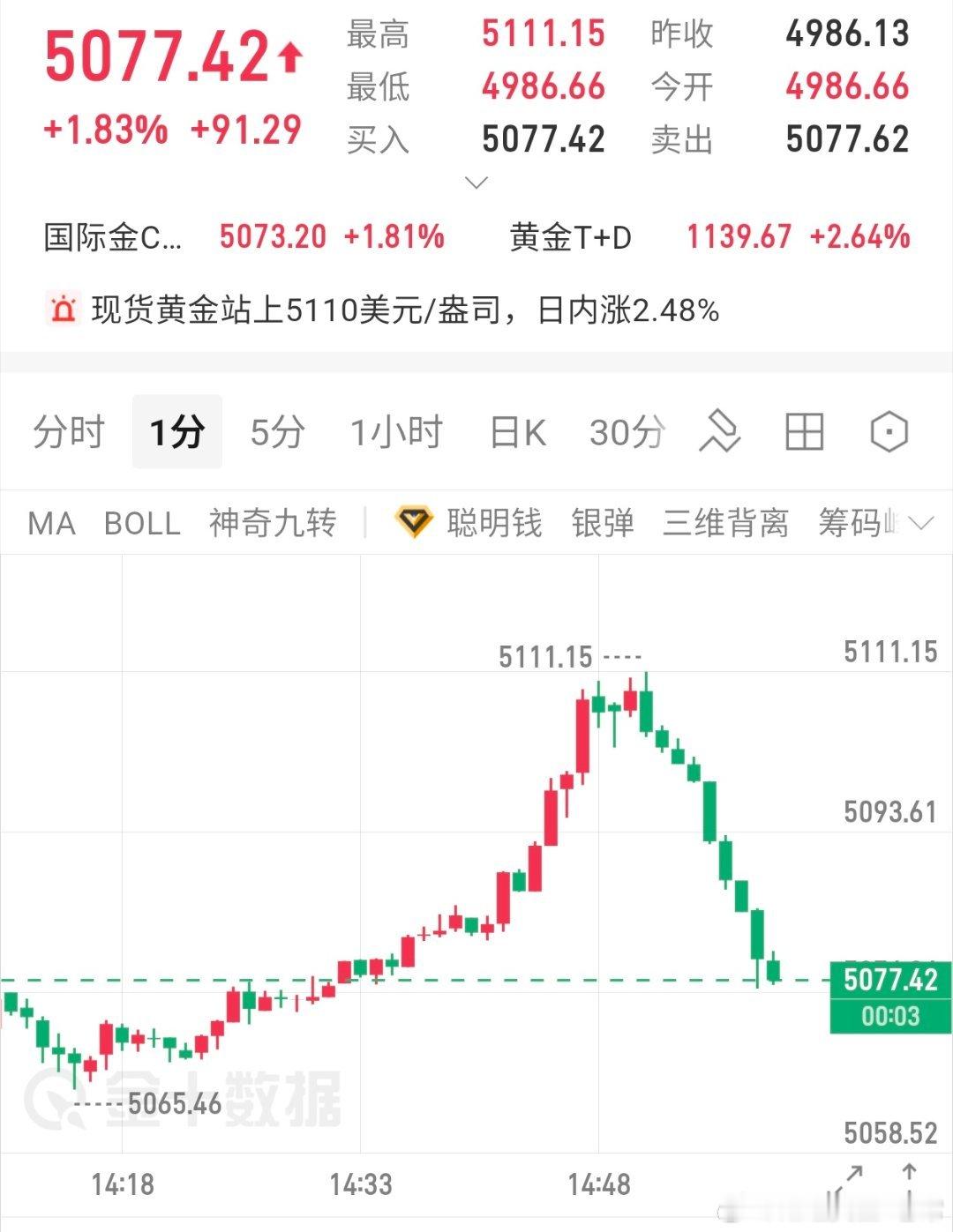 冲高回落下来现价5077顺势进多,防5070,目标5130黄金黄金金价