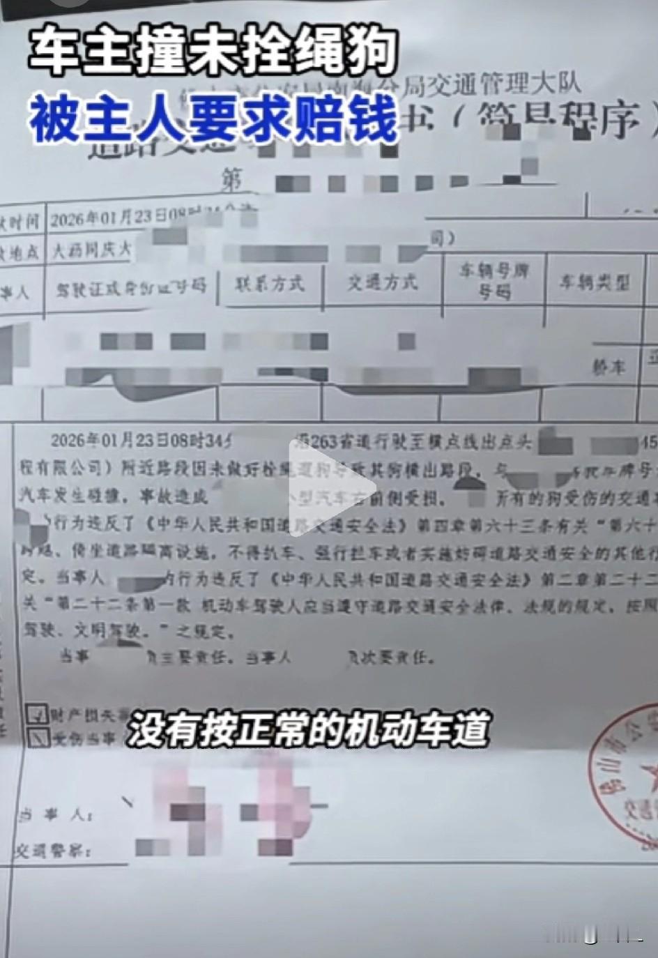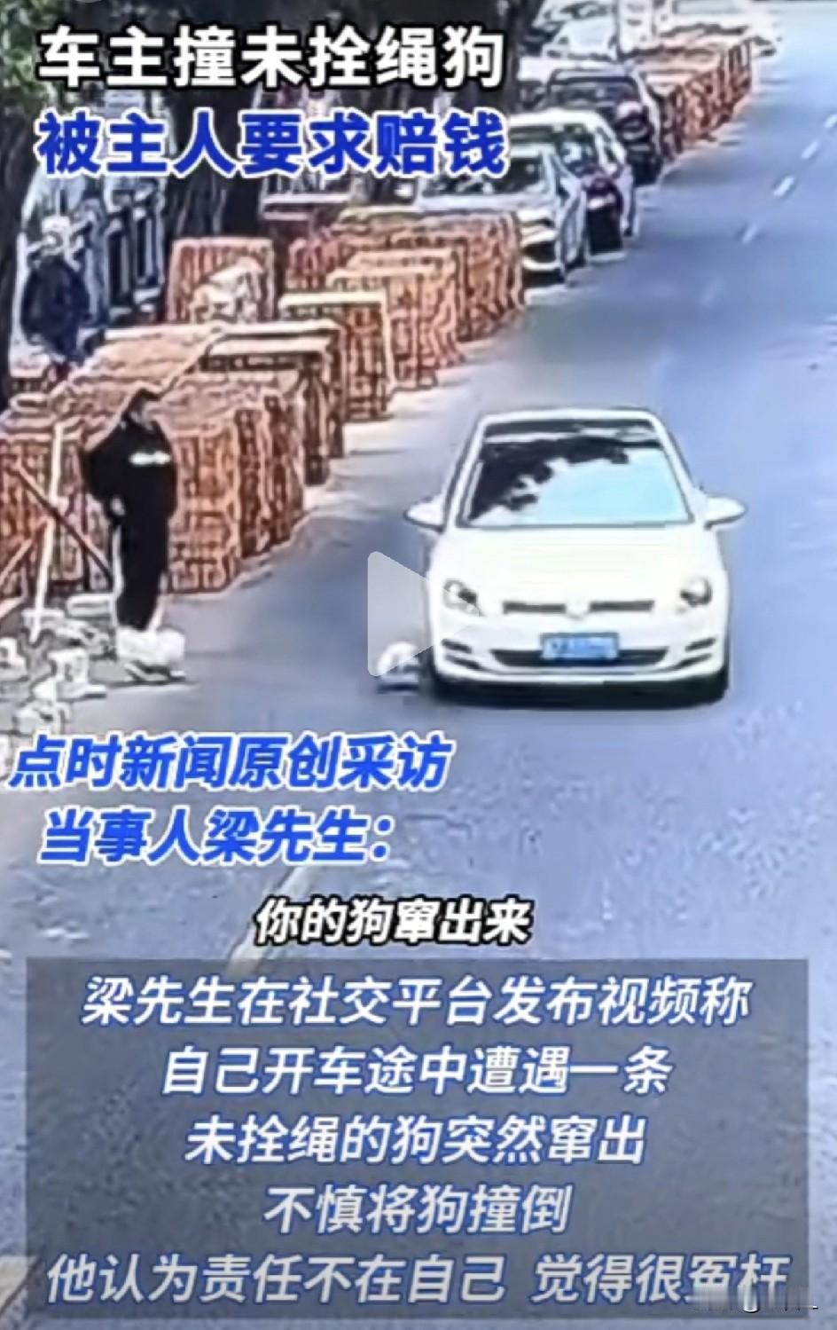 开车遇“刺客”!佛山梁先生懵了:没拴绳的狗窜出,我避让居然还要担责?网友:不栓绳的狗不是应该全责吗? 佛山梁先生开车出门,路边遇上“马路刺客”——一条没拴绳的狗突然从路边杀出!梁先生猛打方向盘,还是听到“嘭”一声,狗子撞上车右前角。 “我当时人都吓麻了!”梁先生说,看狗还能站起来走,心想应该没事,况且狗主人没牵绳,“我以为对方总得来道个歉吧?” 结果剧情反转——狗主人一把拦住他:“你撞我狗了!报警!赔钱!” 交警来了看完现场,判了:狗主人主责,梁先生次责。为啥?原来路边有违停车和砖头堆,梁先生当时稍微偏了点道,不是行驶在正常的机动车道内。 梁先生直呼冤枉:“主要还是狗突然窜出来啊!再说,马路边有违停车辆和堆砌的转头,压根没办法控制车辆在车道内行驶。” 最终,梁先生还是签了事故单,交给保险公司处理。他忍不住喊话铲屎官们:“各位街坊,出门遛狗请务必牵好狗绳!以免再发生类似的事故!” 话说,这年头开车不仅要防加塞,还得防“汪汪队突袭”啊…… 大家怎么看?觉着梁先生的次要责任担的冤不冤枉?评论区里恭候您的高见! 素材来源:点时新闻,侵联删!