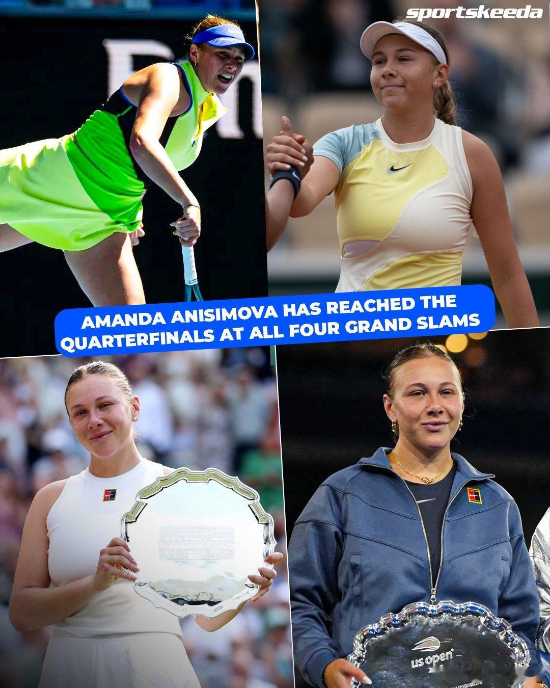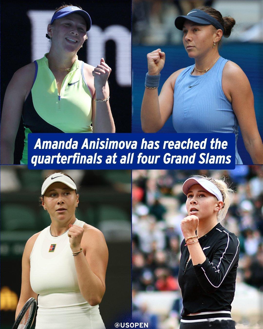 阿尼西莫娃也四大满贯全八强:过去十年内取得此成就第二年轻的选手(斯瓦泰克)!现役:🇺🇸 大威🇷🇺 兹沃娜列娃🇧🇾 阿扎伦卡🇷🇺 帕芙柳琴科娃🇺🇸 斯蒂芬斯🇺🇸 凯斯🇺🇦 斯维托丽娜🇨🇿 卡-普利斯科娃🇹🇳 贾巴尔🇧🇾 萨巴伦卡🇵🇱 斯瓦泰克🇺🇸 佩古拉🇱🇻 奥斯塔彭科🇨🇿 穆霍娃🇨🇿 克雷茨科娃🇺🇸 阿尼西莫娃王欣瑜0比2阿尼西莫娃这很澳网阿尼西莫娃首进澳网八强