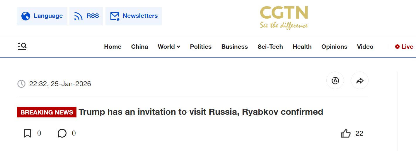 🔻俄罗斯副外长里亚布科夫证实,特朗普已收到访俄邀请。🔻viaCGTN🔻