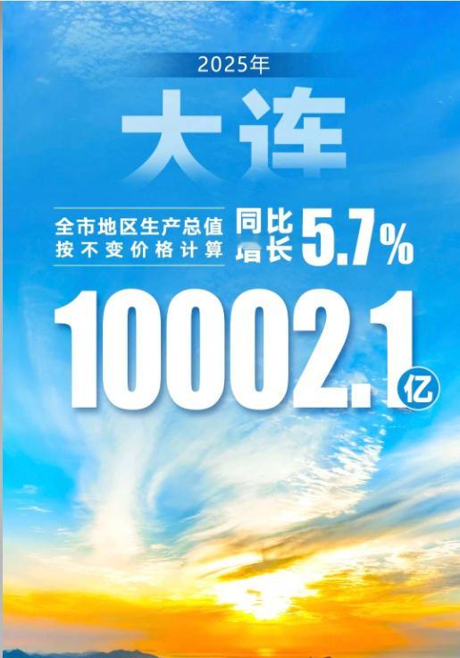 有一种美好叫辽宁东北第一个万亿之城诞生,2025年大连GDP达10002.1亿元、增长5.7%。祝贺辽宁!祝贺大连!