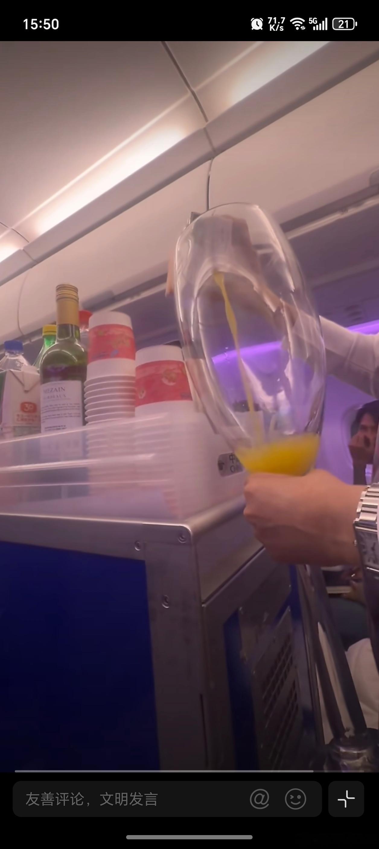 空姐笑了半小时才把橙汁倒下去不是,这么大的杯子怎么带上飞机的杯子材质应该不是玻璃的吧,不然可有点危险