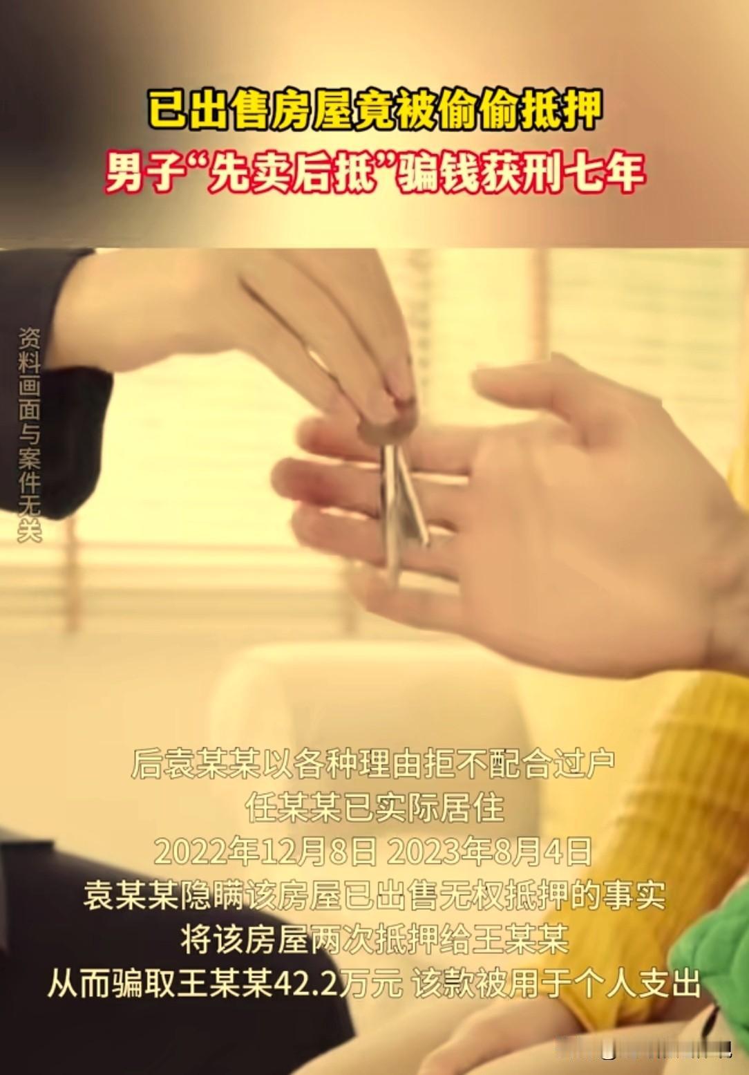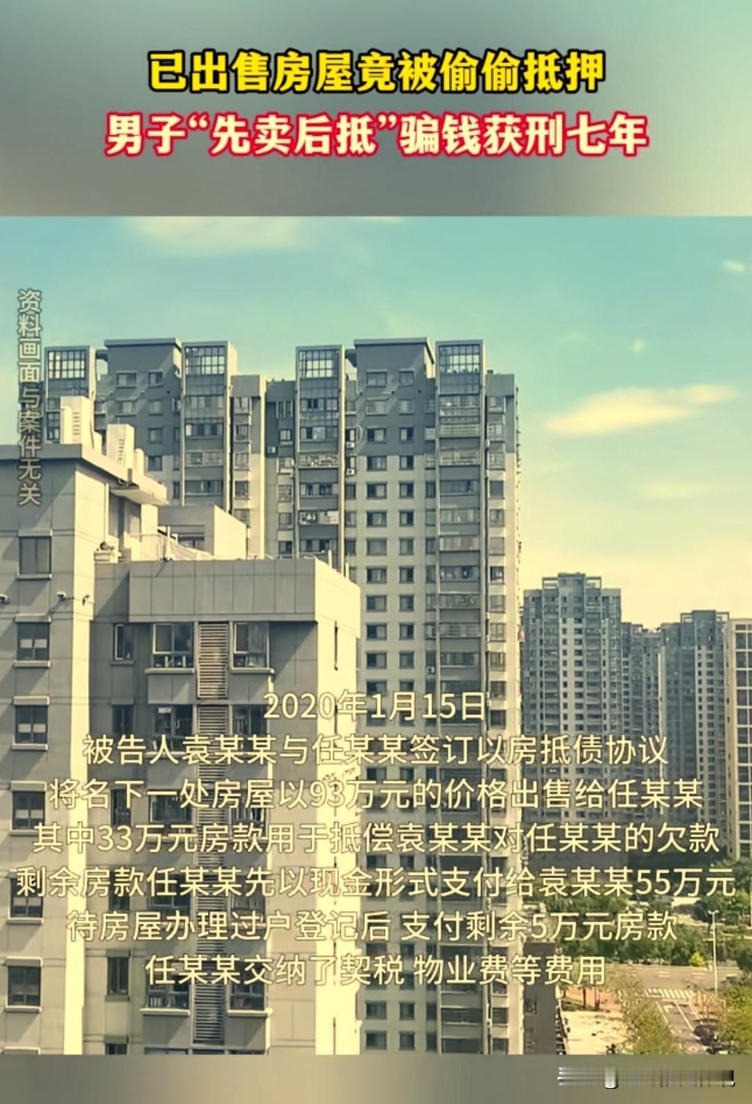 一房两卖?河南商丘,男子欠了33万元的外债,因无力偿还,把自己的一套房子,以93万元的价格卖给了债主。扣除33万欠款后,债主又给了男子55万,并承诺剩下的5万元,等房子过户后再给。债主办理了契税、物业费也交了,随后住进房子,但男子拖着不过户,将房子抵押给其他人,又骗取了42.2万元,事情败露后,男子悲剧了。 老袁和任老板相识多年,平时两人有些生意上的往来,彼此也算熟人。 2020年初,老袁的生意遭遇了困境,加上他不节制的高消费,资金周转出现了大问题。 尽管他东拼西凑,最终还是欠了任老板33多万,一直没能还上。 任老板多次催款,甚至找到他家里,但老袁实在拿不出钱,急得像热锅上的蚂蚁。 在任老板不断的催债下,老袁实在没办法,在2020年1月15日,双方签了一份“以房抵债”协议。 老袁决定把自己名下一套房子,作价93万元,卖给任老板。 其中33万直接抵了之前欠的债,剩下的60万,任老板当场点了55万现金给老袁,还约定,最后5万等房子过户完再给。 双方签完协议,任老板心里踏实了不少,他很快就去交了契税、物业费。 然后找了工程队,欢欢喜喜的开始装修房子,房子装修好,任老板喜迁新居住了进去。 任老板觉得这房子已经是自己的囊中之物,白纸黑字的协议也写得明明白白,以后就可以安心住。 可老袁这边,拿到55万根本不够用,原来他并不是之欠任老板一个人的钱。 于是他在心里打起了小算盘,房子虽然签了协议,算是卖给了任老板,但还没过户。 房产证上还是自己的名字,2022年底的时候,又有债主催债,此时他已经差不多穷困潦倒了。 他盯上了这套房子,想着利用这还没过户的空子,再弄点钱花花。 他四处打听,找到了做生意的王某。 老袁满脸愁容的对王某称,自己最近生意上急需资金周转,想用自己那套房子做抵押借点钱。 王某很谨慎,决定去房产部门查查,看看房子有没有问题,合适的话再说。 老袁连忙点头,应该的应该的,您尽管去查,绝对没问题。 王某去房产部门一查,房产证是真的,名字也是老袁的,没啥问题。 老袁又带着王某去看房子,不过他耍了个心眼,提前做了安排,房子看起来没人居住。 王某看到房子空着,证也没问题,就按流程给老袁办了抵押登记。 并先后与2022年12月8日、2023年8月4日,分别借给老袁42万多元。 王某根本不知道,这房子早就有人付了钱,还住进去了。 老袁拿到这笔钱后,十分得意,觉得这钱来得太容易了。 钱到手后,他早把欠钱的事忘光了,拿着钱到处挥霍,吃喝玩乐,没多久就把钱花了个精光。 任老板毫无察觉,在房子里住得舒舒服服的,一直等着老袁办过户手续。 可他催了无数次,老袁总是找各种理由拖着,今天说忙,明天说有事,就是不肯去办过户。 任老板虽然心里有点不踏实,但想着有协议在,且房子自己已经入驻,也就没太往坏处想。 直到2023年夏天,任老板偶然听到一个消息,说老袁的那套房子被抵押了。 他一下子就懵了,赶紧去核实情况,这才恍然大悟,怪不得一直拖着不过户,原来老袁一直在骗自己。 任老板又气又急,赶紧报了警。 警方接到报案后,立刻展开了调查。 他们发现,老袁在抵押借款的时候,刻意隐瞒了房子已经出售、有人实际居住的事实。 老袁心里清楚,一旦任老板主张权利,这抵押根本就无法实现。 王老板的钱,大概率要打水漂,但他为了钱,还是铤而走险这么做了。 案子移交法院,老袁还辩解称,自己只是临时周转一下,以后会还钱的。 法院查明的证据显示,老袁借款后,全部用于个人消费。 根本没有制定任何还款计划,而且两次把房子抵押,这明显就是主观上根本没打算还钱。 法院经过审理认定,老袁以非法占有为目的,采取隐瞒真相的方法骗取他人钱财,数额巨大,构成诈骗罪。 根据《刑法》第266条规定:诈骗公私财物,数额巨大或有其他严重情节的,处3年以上10年以下有期徒刑,并处罚金。 最终,法院判处,老袁有期徒刑7年,并处罚金8万元。 通过这起案例,也给大家提了个醒:买房人签了合同、交了钱,甚至搬进去了,都不能算真正拥有房子。 一定要尽快办理过户登记,拿到不动产权证书,这样才能从根本上防止“一房二卖”或者“偷偷抵押”的骗局。 如果出作为借人,在接受房产抵押时,千万别只看房产证,一定要去房子里看看。 是不是房主本人在住,有没有其他人生活的痕迹,多问一句、多看一眼,可能就能避免一大笔损失。 对此,你怎么看? 关注@赵哥的法律观,明辨是非不上当。