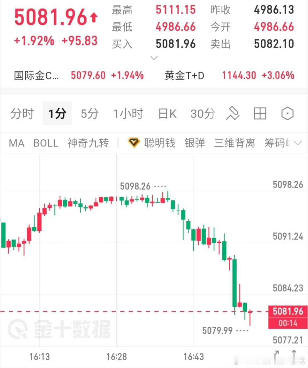 参考黄金现价5082继续顺势做多,上看5130,防5077黄金金价
