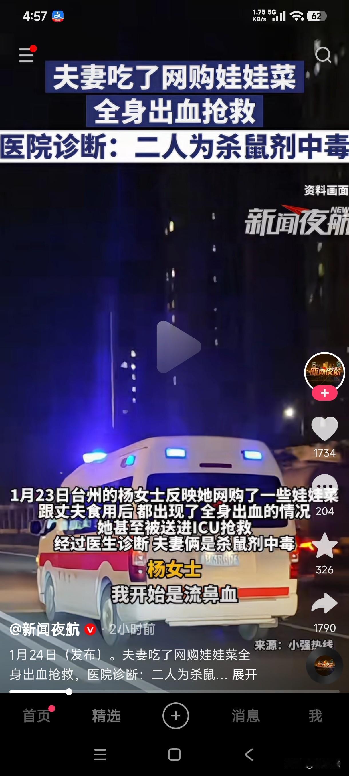 女子网购娃娃菜夫妻俩食用后双双出现全身出血的情况,最终经过医生诊断,夫妻俩都是杀鼠剂中毒。 谁能想到网购的娃娃菜吃了后居然中毒了,本以为是娃娃菜之前给打过老鼠药,原来娃娃菜上面的老鼠药并不多,而是包装娃娃菜的纸上面有老鼠药成分,所以她们夫妻俩吃后都双双中毒了,这商家对食用菜的包装也太马虎大意,这万一吃出人命来谁能想到是娃娃菜的包装纸上有老鼠药,究竟是用包过老鼠药的纸包装菜的?还是故意在包装纸上喷上老鼠药包装起来为防虫子和老鼠的?
