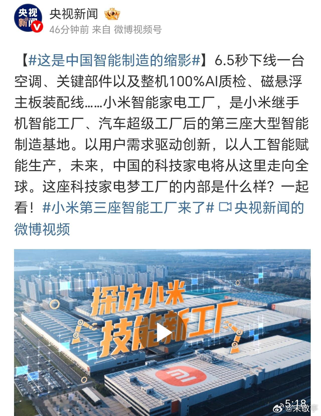 从最早的代工质疑到如今小米确实一直在进步。如今第三座智能工厂都来了,智能制造能力继续突破,在武汉大家电工厂6.5秒就能下线一台空调的生产效率,是这座智能工厂交出的又一亮眼答卷。作为国家级智能制造企业,小米手握手机、汽车、大家电三座智能工厂,将前两者的智造经验深度融入大家电生产,实现制造公差精准至±0.05mm,关键零部件100%AI质检,也让自研自产的首款中央空调有了品质底气。如今小米成为全球唯一兼具手机、智能家电、智能汽车产研一体能力的品牌,人车家三大赛道齐头并进,是中国智造从追赶到领先的生动缩影。自建工厂带来的品质与产能双可控,让小米有底气推出空调全品类10年包修服务,覆盖家用与中央空调,用实打实的服务升级回应市场期待。小米第三座智能工厂来了