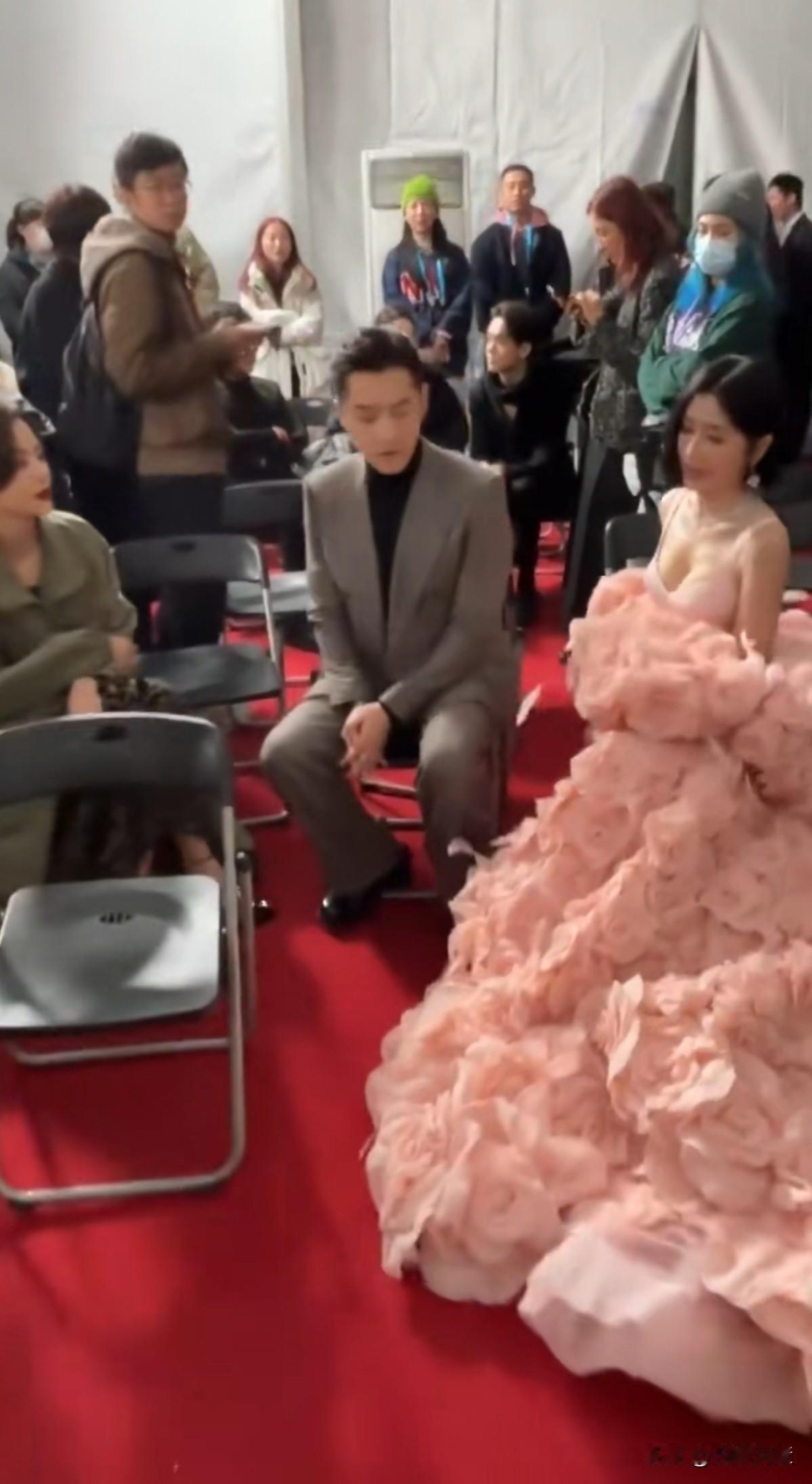 左边辛芷蕾,右边秦岚, 都是超级大美女。 看是真想看啊,可是又不敢看。 胡歌一本正经,目不斜视, 真的太难为胡歌了…