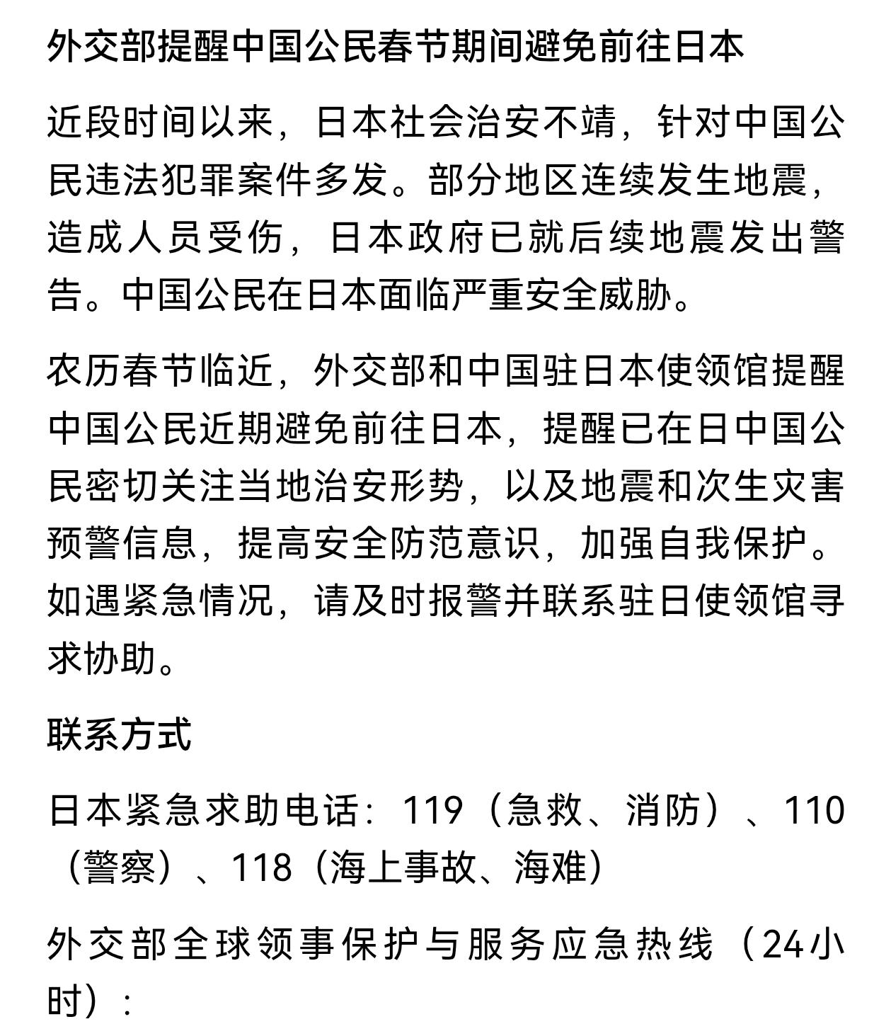 中国公民春节期间避免前往日本! 日本还能撑多久? 现在就像是一场演练,在断掉日本各种生产资源供给的原料后,再次叠加对日本旅游业的打击,要知道日本旅游业占据着日本经济的不少分量,每年旅游业都为日本带去不少收入,特别是来自中国游客的消费, 如今日本国内政局不明朗,自民党和在野党为争夺众议院的话语权,现在正斗得不可开交,日本经济持续低迷的情况下,美国还不断吸血日本,日本还能撑多久?