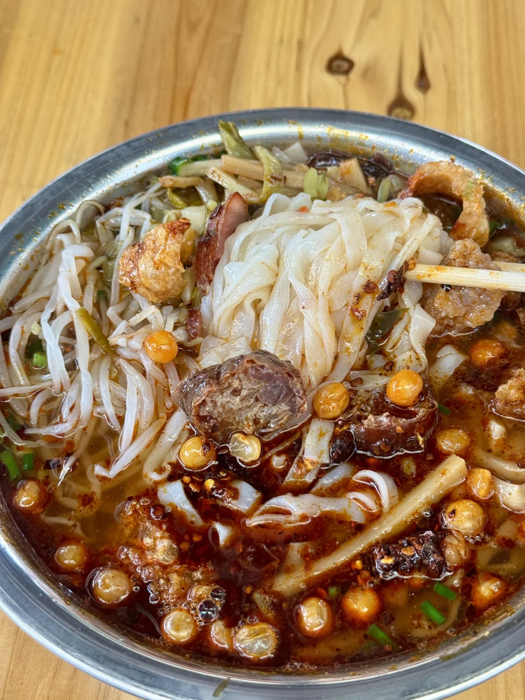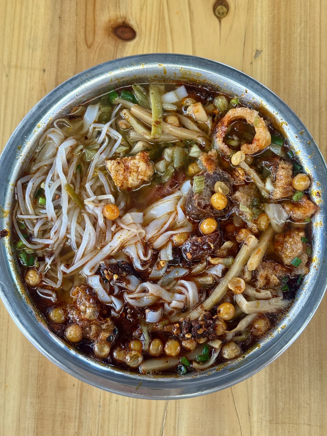 我真的太爱这种细细的切粉了!! 这家老板也好大方,一两粉8块,你和他说肉菜样样要他给好多哈哈哈! 辣椒油不辣但是很香很香,好多人都冲着他家五花肥叉去的!