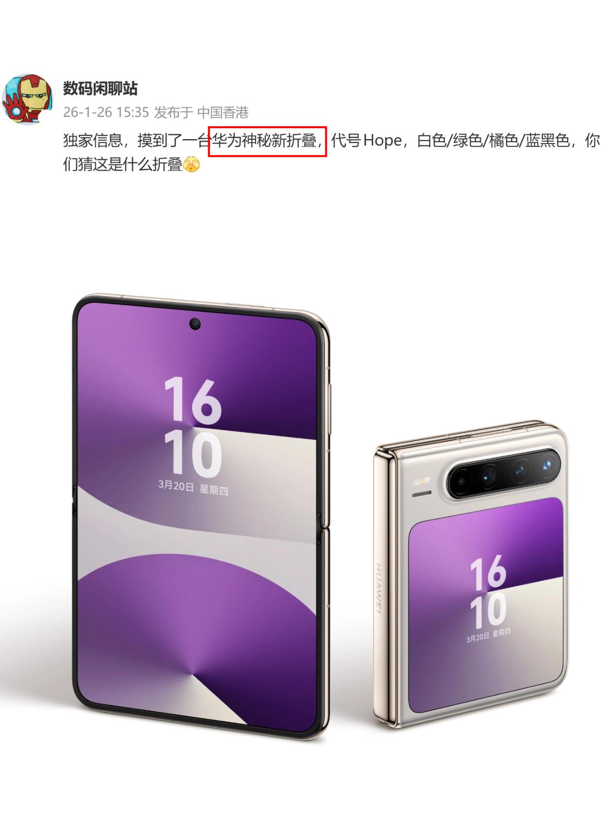 大的来了?华为神秘折叠屏曝光,对标苹果? 很离奇嗷,华为爆出还有一款神秘折叠屏,红、白、橘、蓝黑四款配色,看很多人都在说,这是对标苹果折叠屏的阔折叠,第二代Pura X 之前其实就传出来过,今年国产有几款阔比例折叠屏要发布,一款就在9月份,跟iPhone Fold正面对抗,难道就是这款了? 这么看今年折叠屏市场很热闹啊,苹果首款折叠屏,华为阔折叠新机,还有主打轻薄全能的OPPO Find N6,大折叠百花齐放 不过依照华为在折叠屏领域的市占率还有技术实力,感觉这新机应该会卖爆啊?大家怎么看?