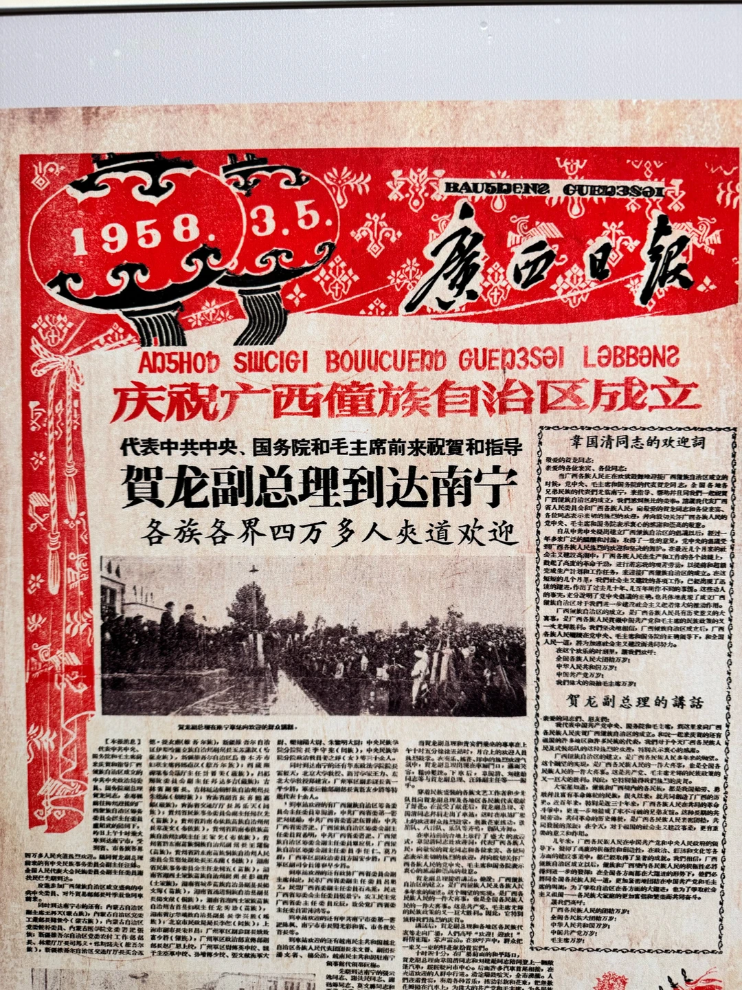 图片拍摄于南宁广西壮族自治区博物馆 1958年的时候是叫广西僮族自治区 到了1965年才改成广西壮族自治区