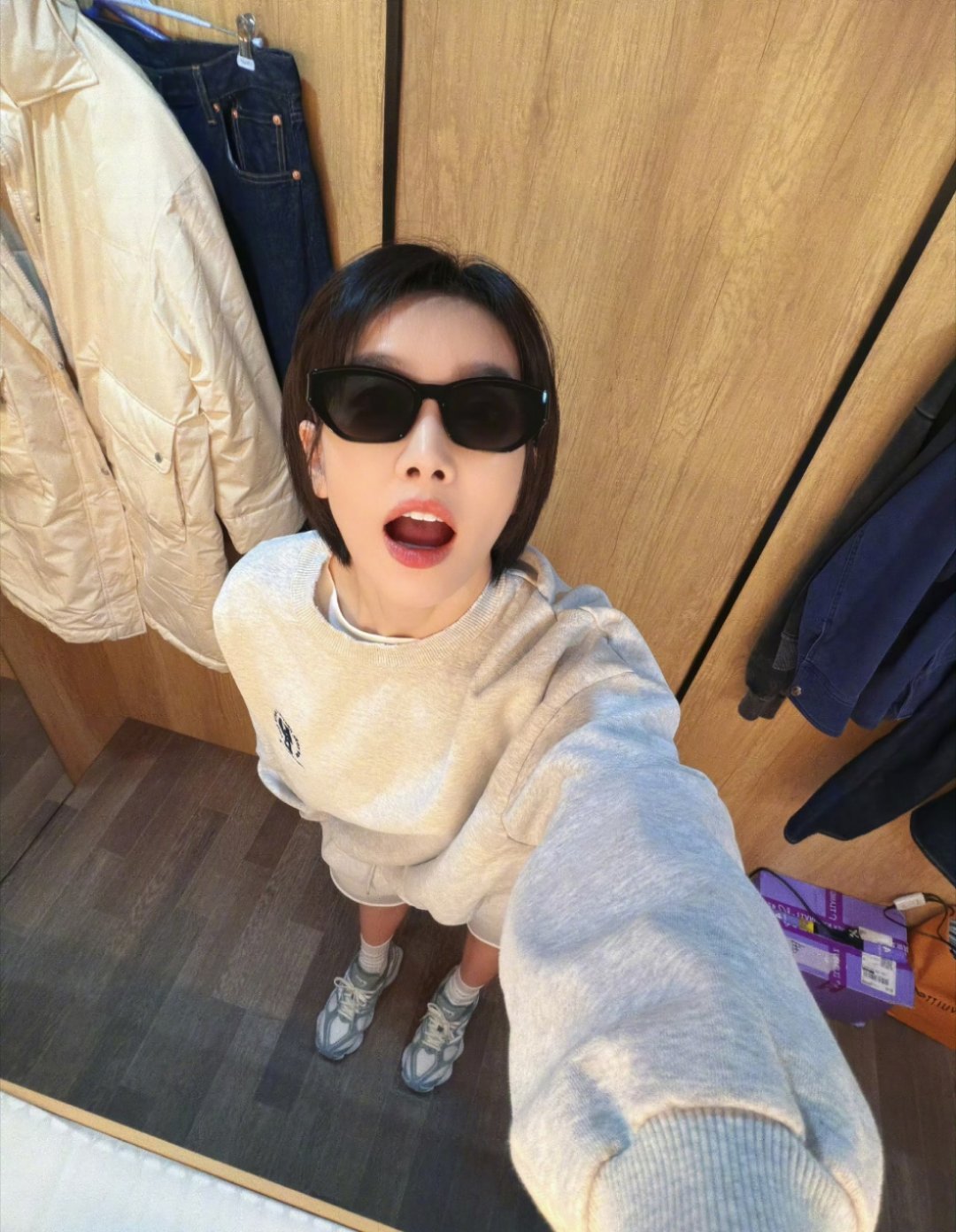 艾米这造型深得我心,连阴天都变得温暖☁️!