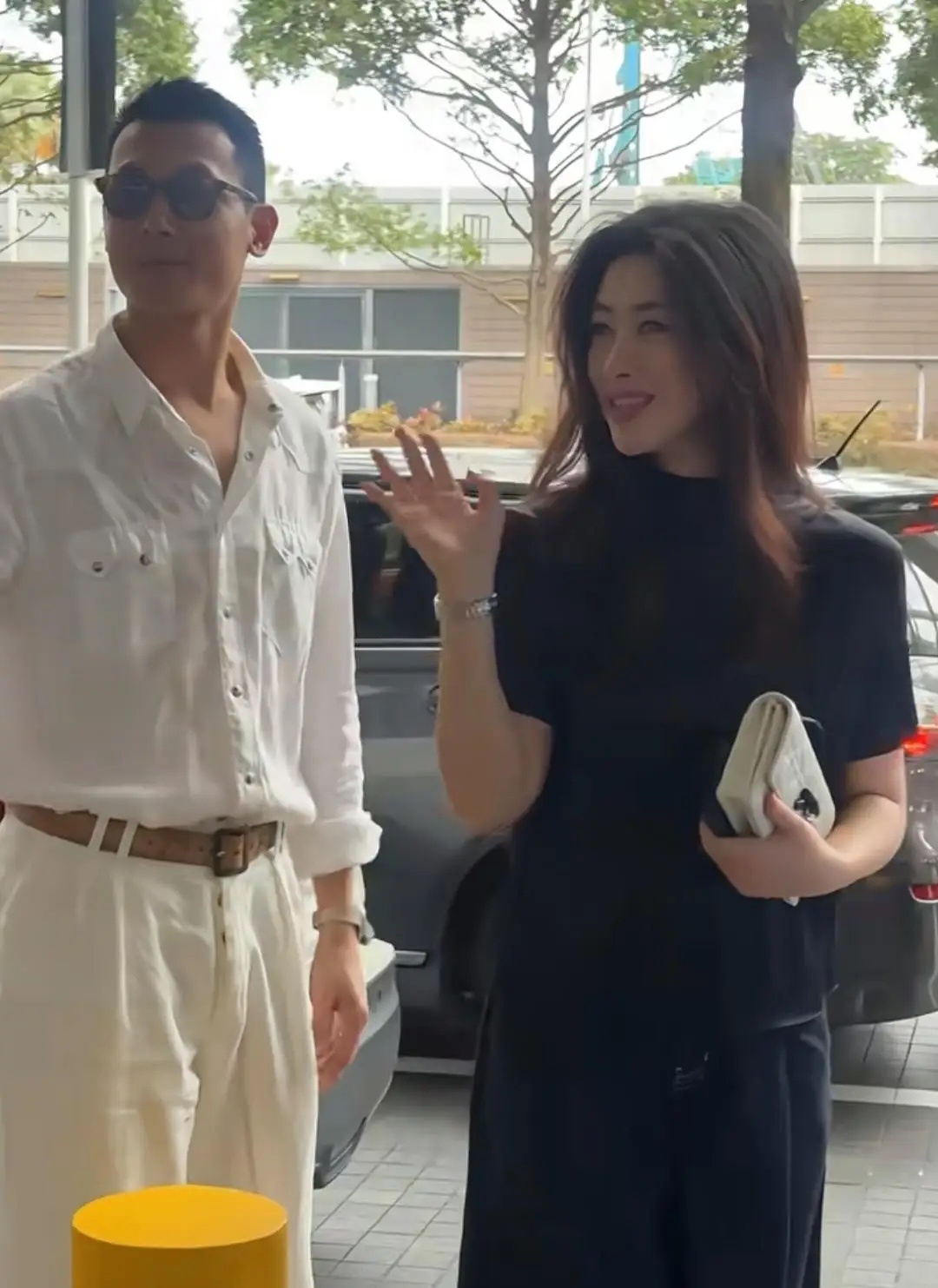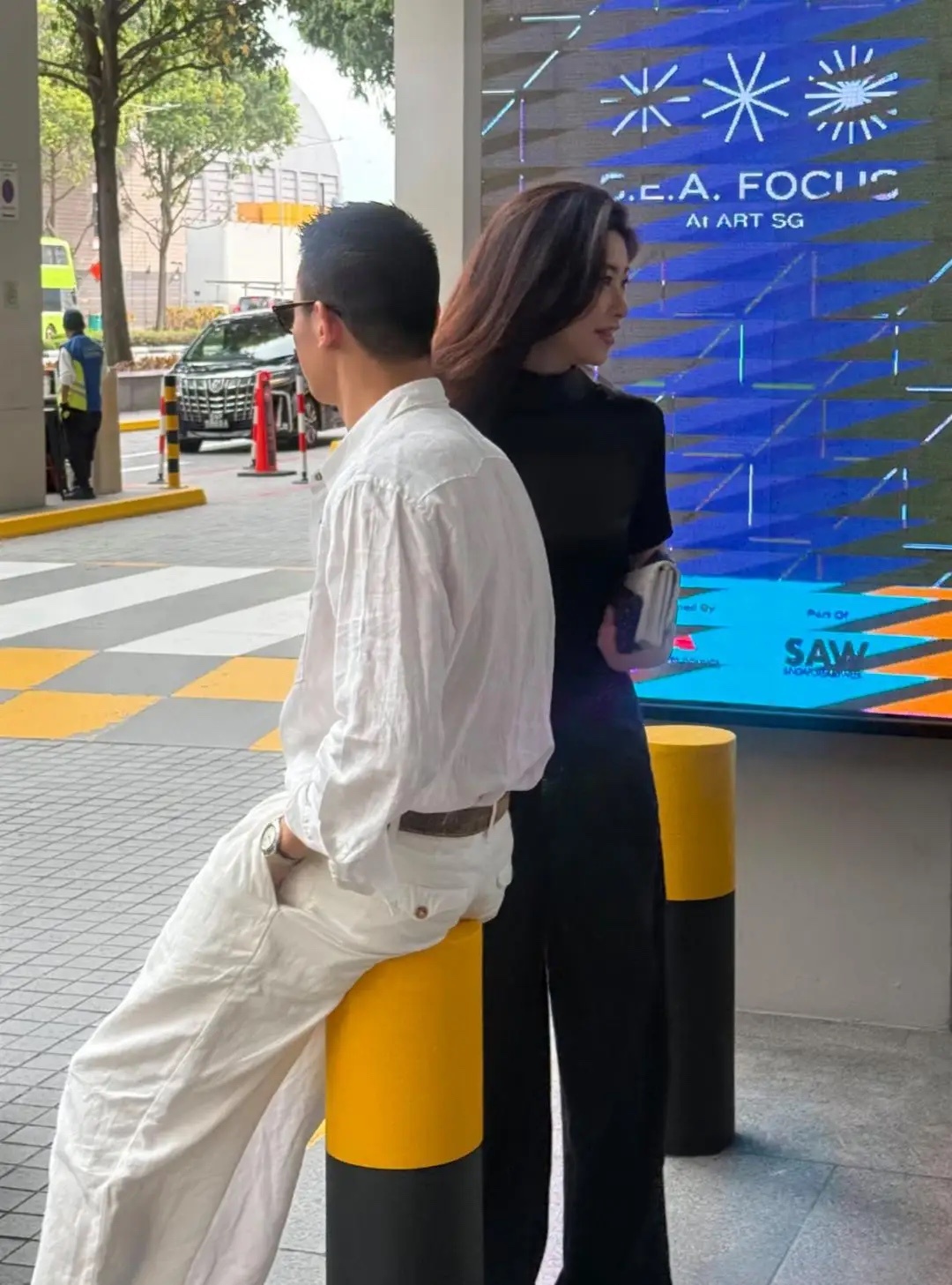朱珠和老公王昀佳现身新加坡,两人在路边等车,夫妻俩穿着一黑一白的衣服,看起来好时尚。她的老公身材高大,长相英俊,两个人好般配。