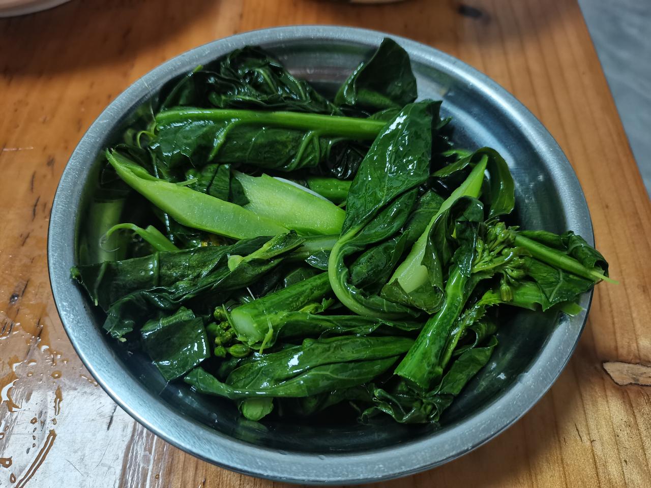 又大又嫩的芥兰,来自房东的馈赠,傍晚快六点的时候房东从外面回来,手里提了杨桃和芥兰,房东说芥兰是在地里刚掐的,很嫩,问我要不要,如果要可以给我一半。 这么鲜嫩的芥兰,价格可不便宜,而且周围我也不熟,今天只买了两条排骨和一块前上肉,村里就一家卖肉的摊位,卖蔬菜的地方我还不知道在哪里。 芥兰的菜苔比大拇指还要粗一些,但是真的很嫩,今天晚上排骨汤也失宠了,因为有了新鲜的芥兰,真的非常好吃!谢谢房东的馈赠!