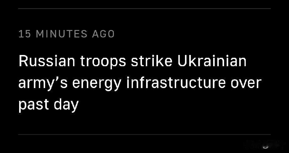 俄军持续打击乌军能源基础设施 1月26日,塔斯社消息,俄罗斯国防部通报,在