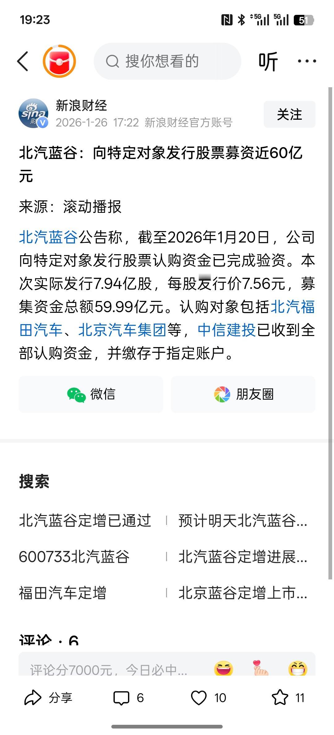 今天北汽蓝谷大跌,有人故意洗盘,北汽蓝谷:向特定对象发行股票募资近60亿元!在60亿已经达到了预期落地,相关资金已经到位!接下来北汽蓝谷投19亿继续升级享界智能化工厂,为后续的新车产品进行改造升级,肯定会推出享界SUV的车型!最近主力机构有点想洗出筹码的意思! 而根据北汽蓝谷的公告!北汽蓝谷的高管在大幅增持北汽蓝谷的股份,上限不高于1600万,下限不低于1200万!看好自己家公司的发展!