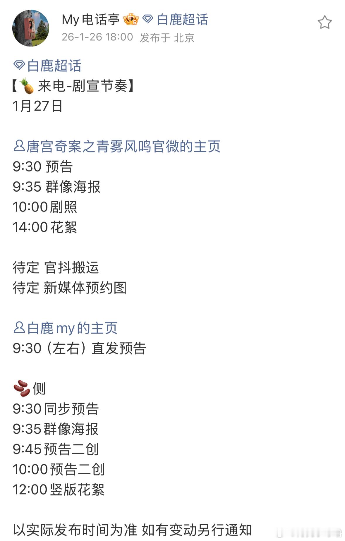 明天明天就是明天!!全体集合!!📣我们唐宫奇案新预告 新海报 新剧照 新花絮🫘还有预告二创我将李佩仪全肯定 我将狠狠宣传我们唐宫奇案李佩仪 我将让大家知道我们剧名➡️《唐宫奇案》 诡案探案悬疑唐朝宫廷秘辛复仇我们统统都有白鹿演的角色➡️能文能武的女官&县主李佩仪 一款你没见过的帅气女主播出平/台时间➡️即将播出在优/酷(👖)鹿茸们准备了多多☁️包场等待大家 白鹿唐宫奇案 ✨白鹿
