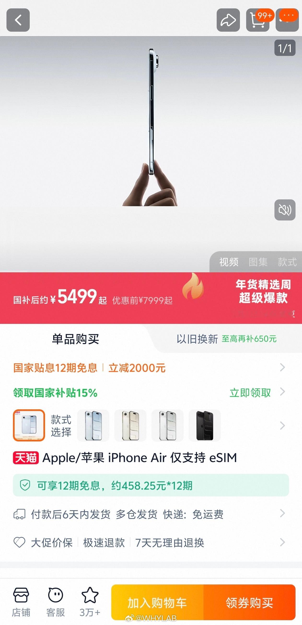 iPhoneAir暴降后卖断货7999 的 iPhone Air 毫无性价比,5499 真香,4599 夯爆了,所以说,一款产品要是销量不行,那就是价格没到位。