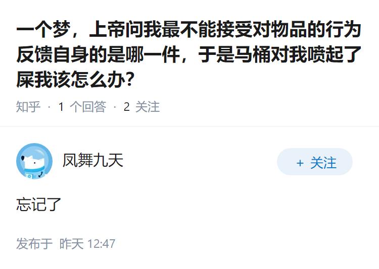 一个梦,上帝问我最不能接受对物品的行为反馈自身的是哪一件,于是马桶对我喷起了屎我