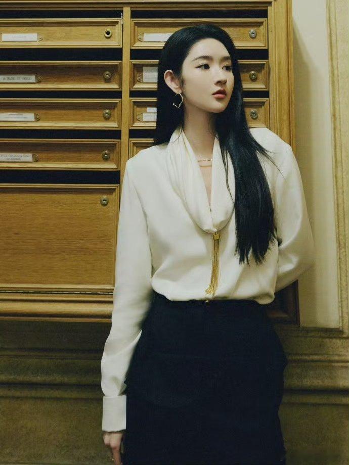 王玉雯塞纳河畔左岸的姐王玉雯巴黎看秀气场全开,白衬衫黑西裤尽显左岸姐感!玉雯姐太