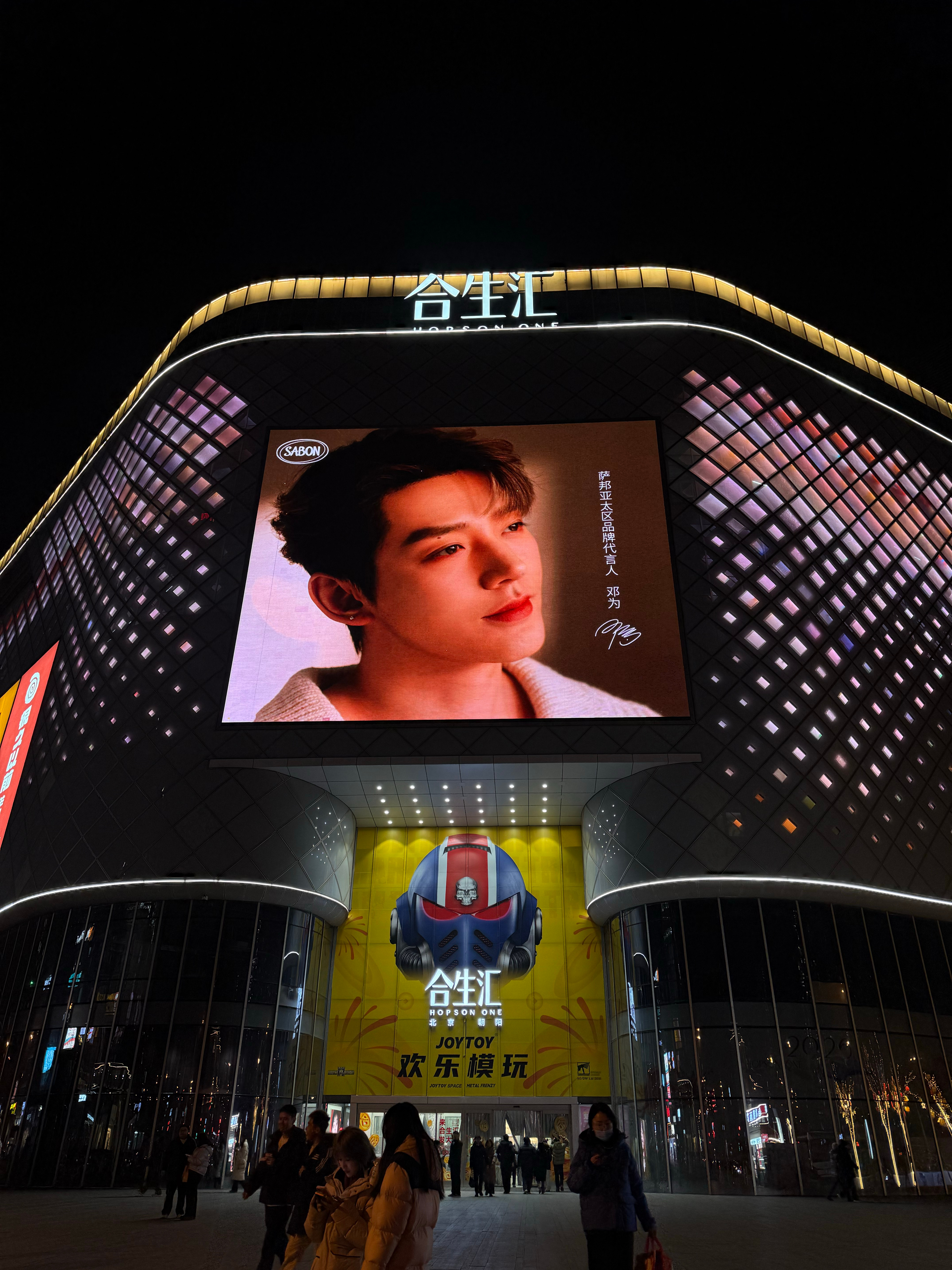 打卡邓为北京合生汇大屏,好好看的代言人邓为sabon亚太区品牌代言人北京·北京