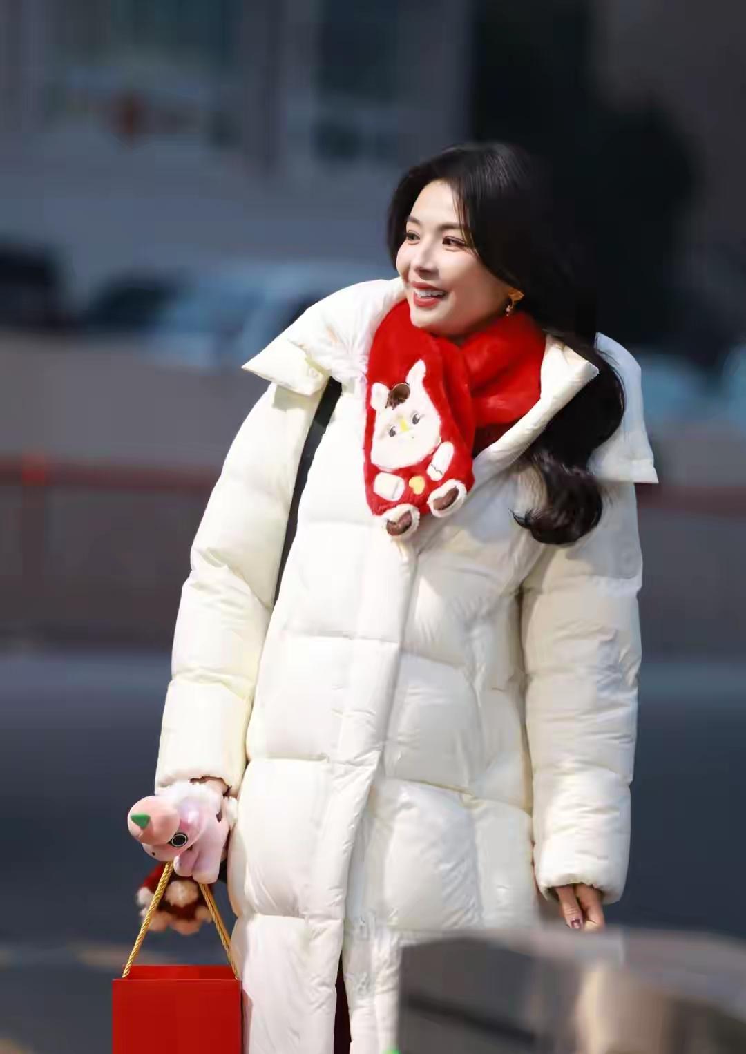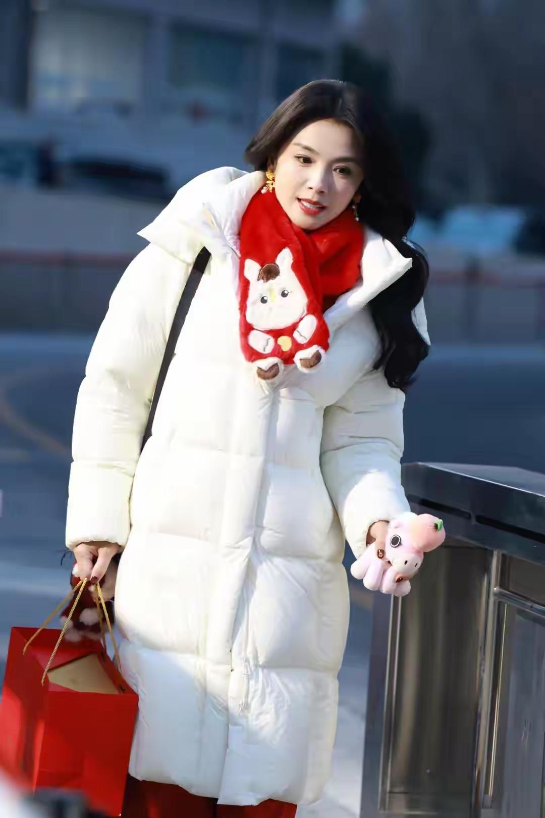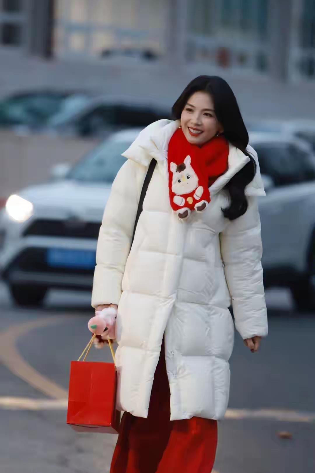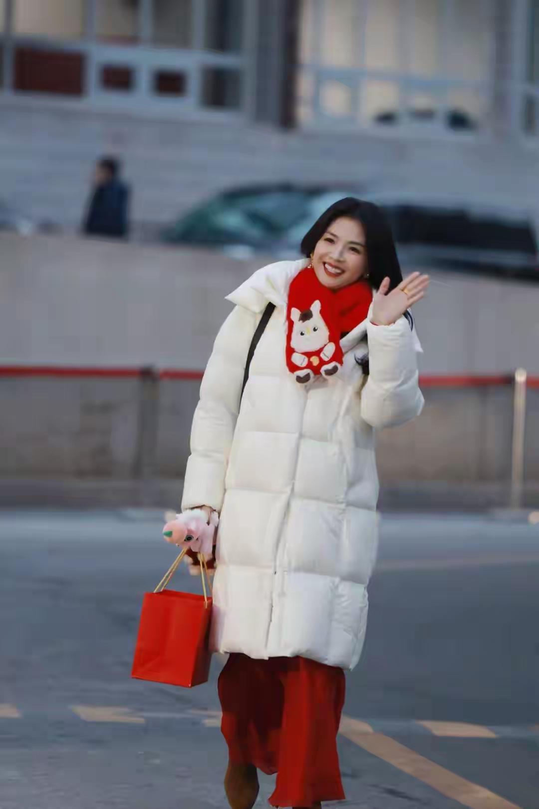 又被刘涛圈粉了! 刘涛春晚彩排路透照,穿白色长款羽绒服搭配红色小围巾,手里提着红色包包,下搭红色裤子,看起来年味十足,有点过年的味道了! 刘涛化着精致的的妆容,波浪长发造型,笑容甜美,温柔有范,与网友挥手打招呼,性格随和,非常有礼貌!