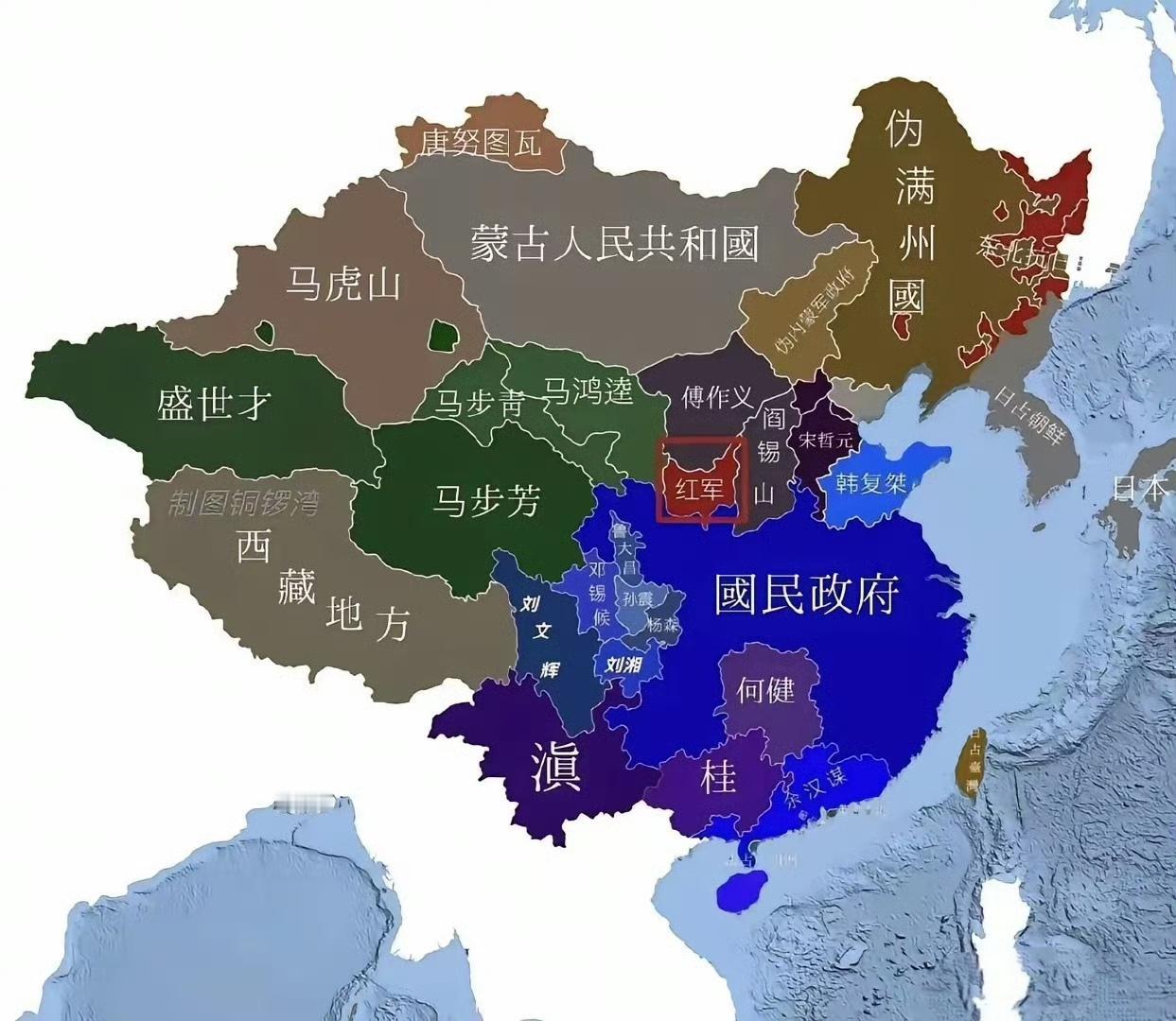 这是日本全面侵华之前的中国地图,军阀割据,国不将国。那个年代,你随便问一个国人: